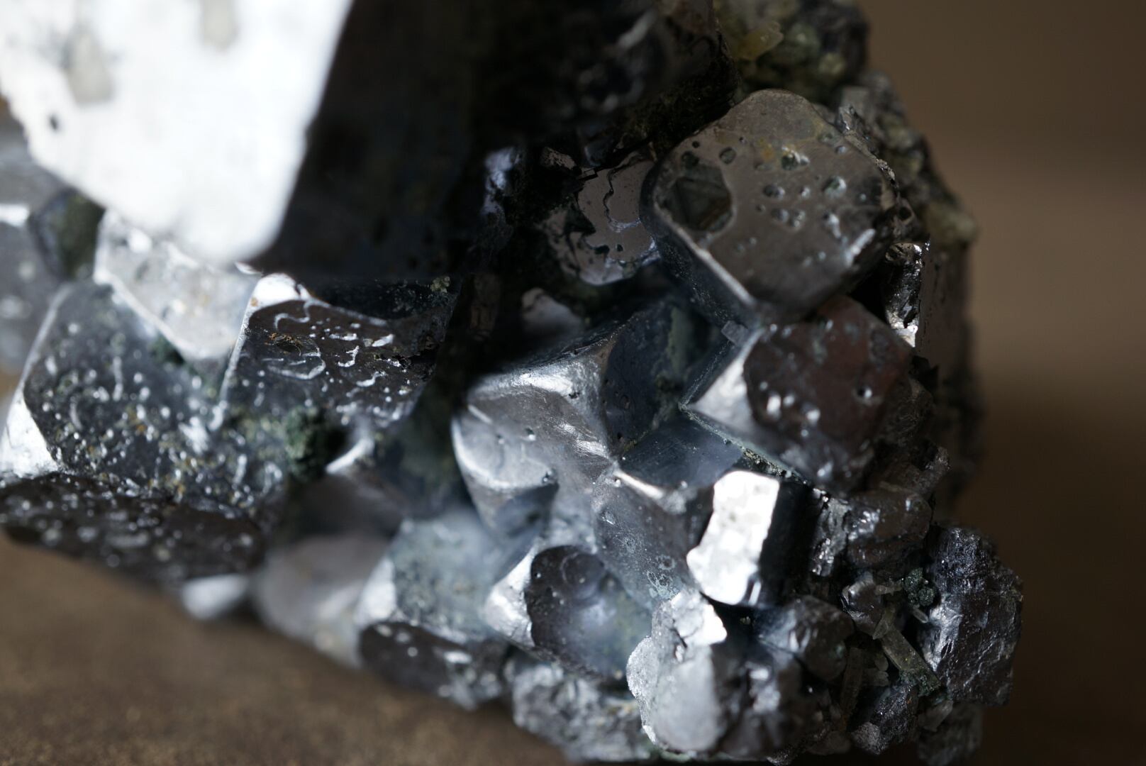 大小の切頂六面体結晶が集まり、ガレナらしい近未来的なヴィジュアルが存分に表れています。