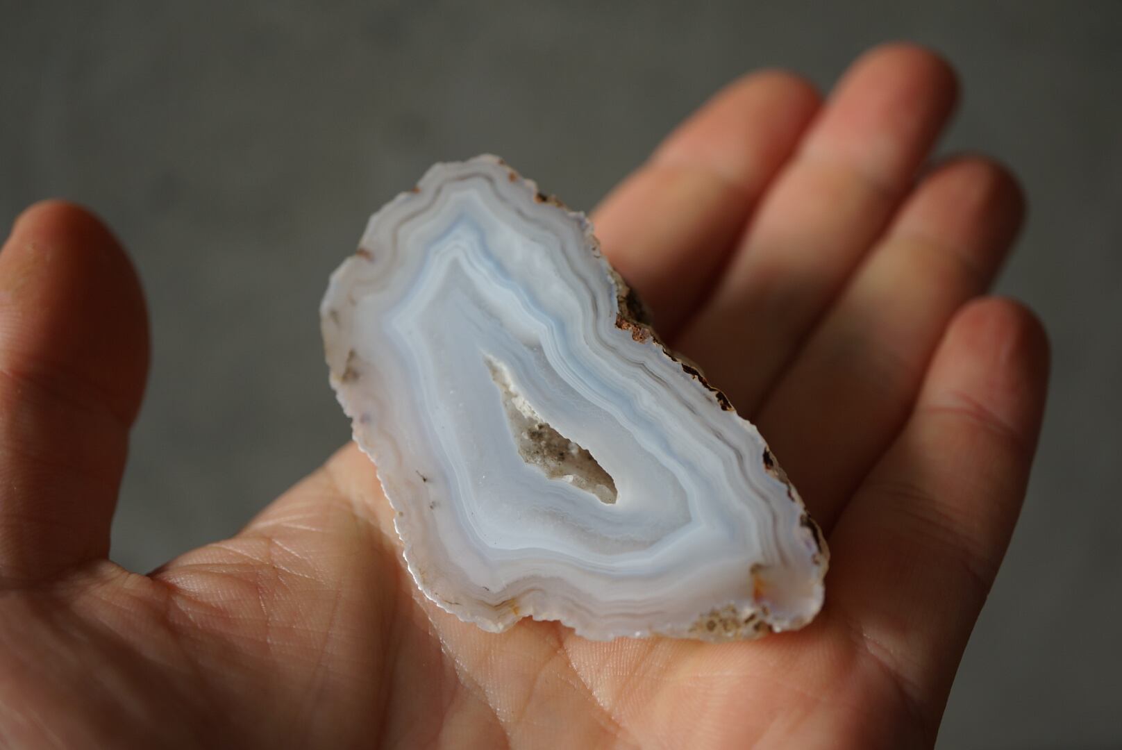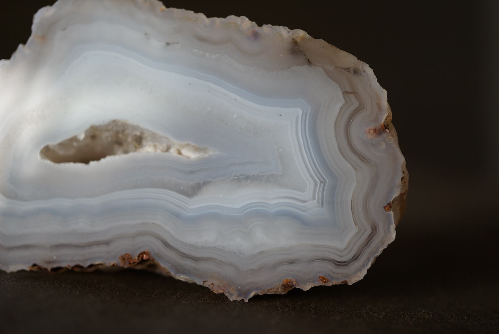 白を基調とした立体的なバンディング(縞模様)が特徴の希少アゲートです。