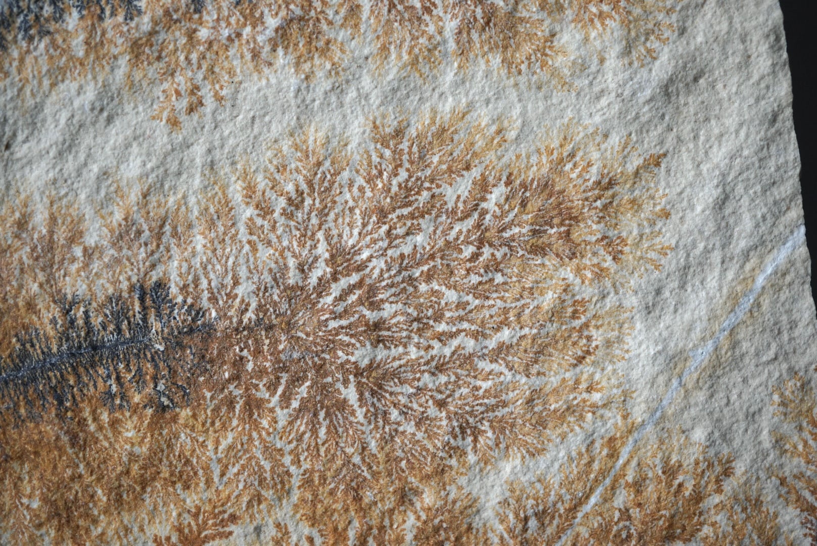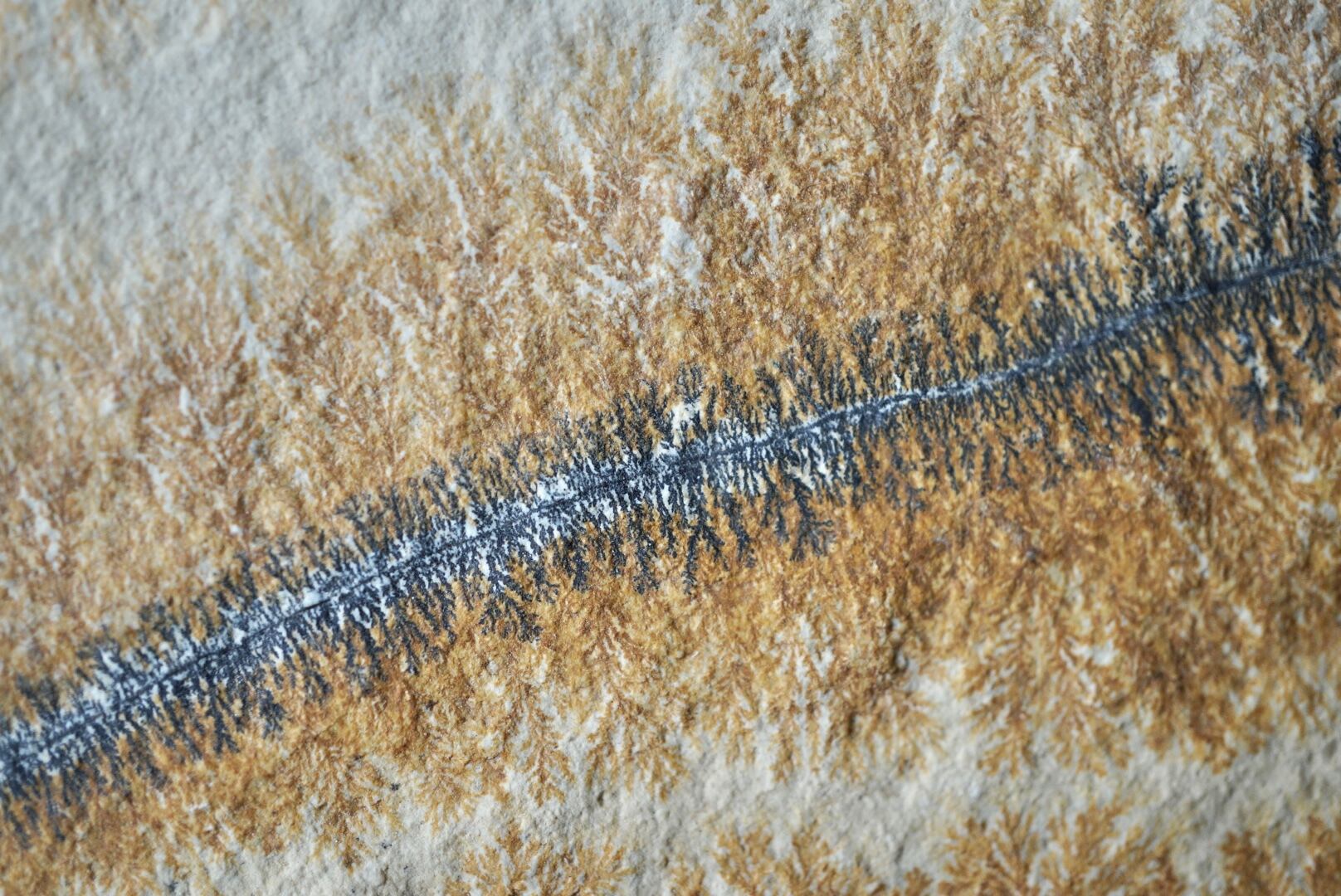植物のように見える模様は二酸化マンガンが岩の間に染み込んでできたもの。