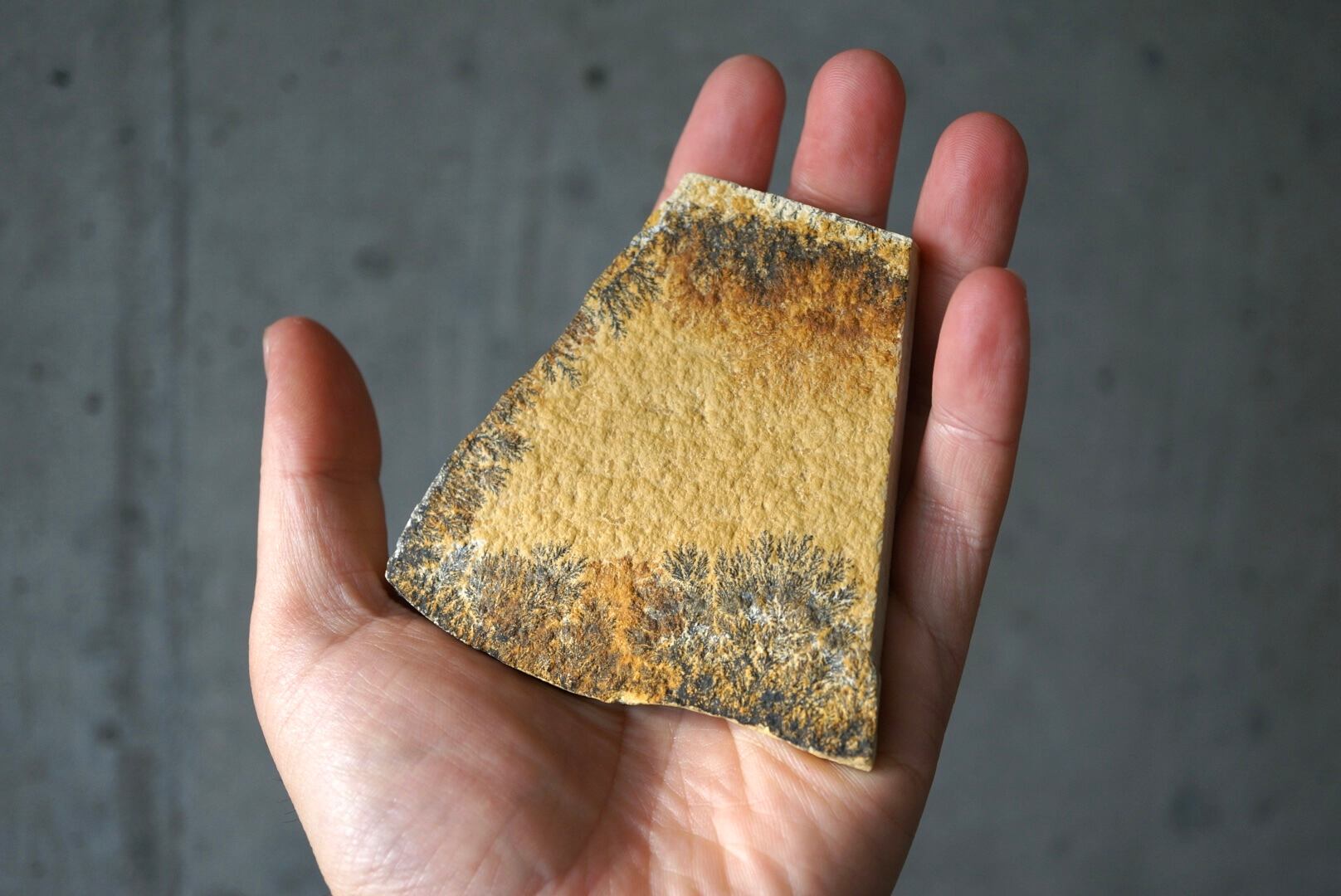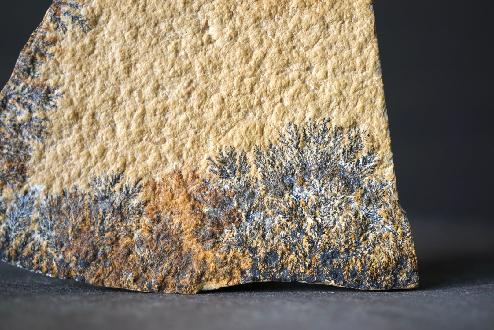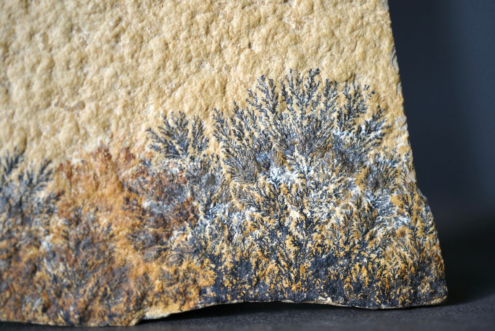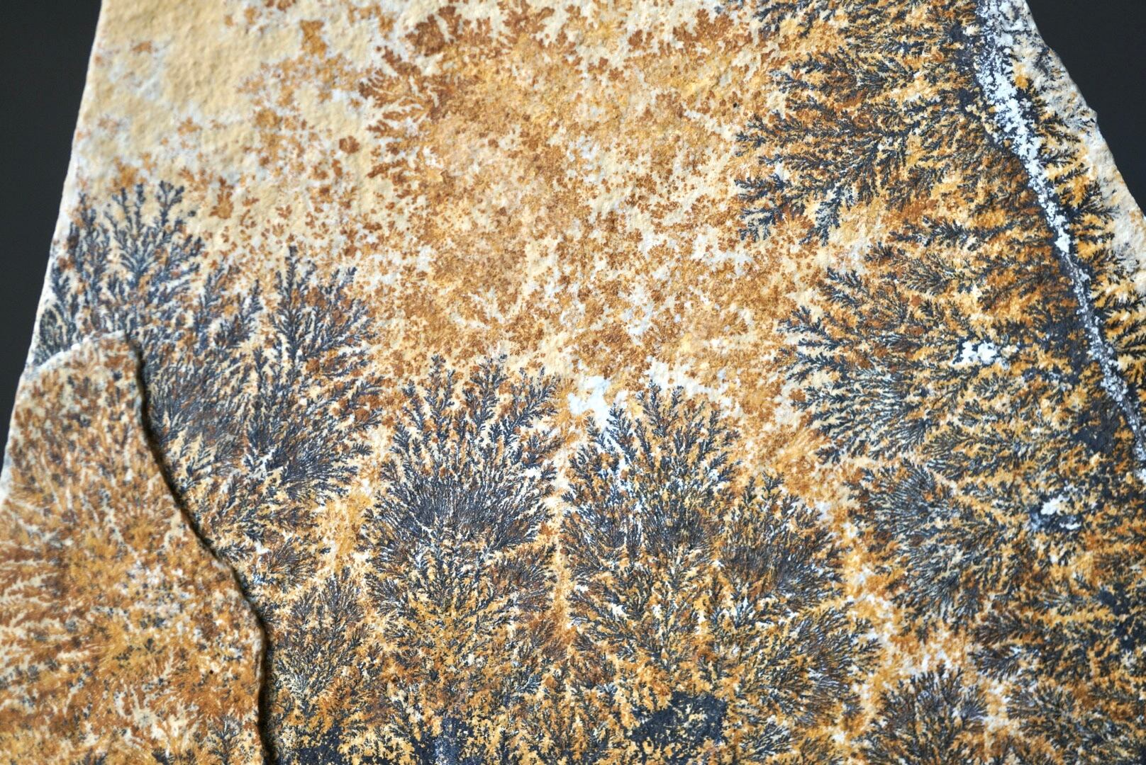 植物のように見える模様は二酸化マンガンが岩の間に染み込んでできたもの。