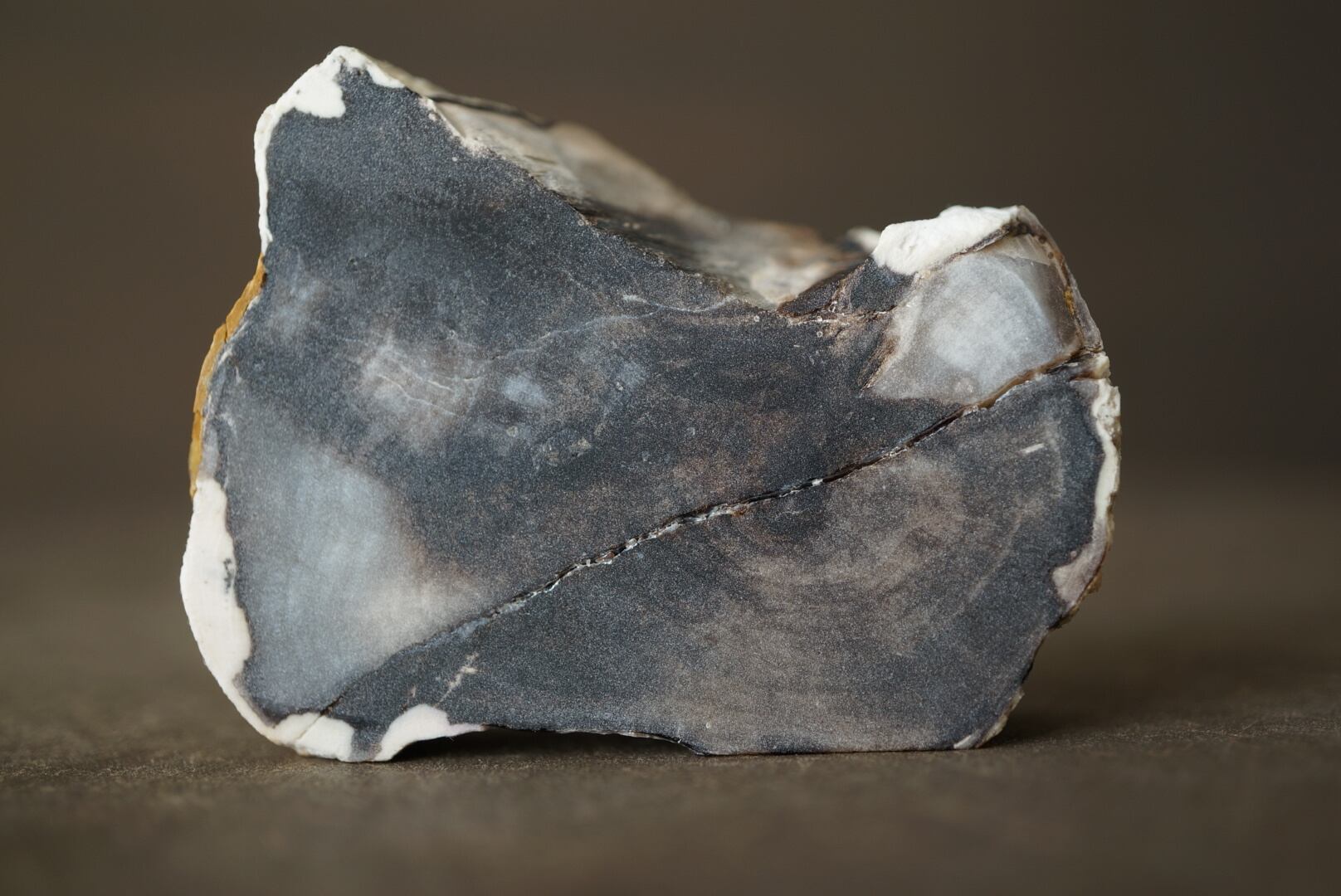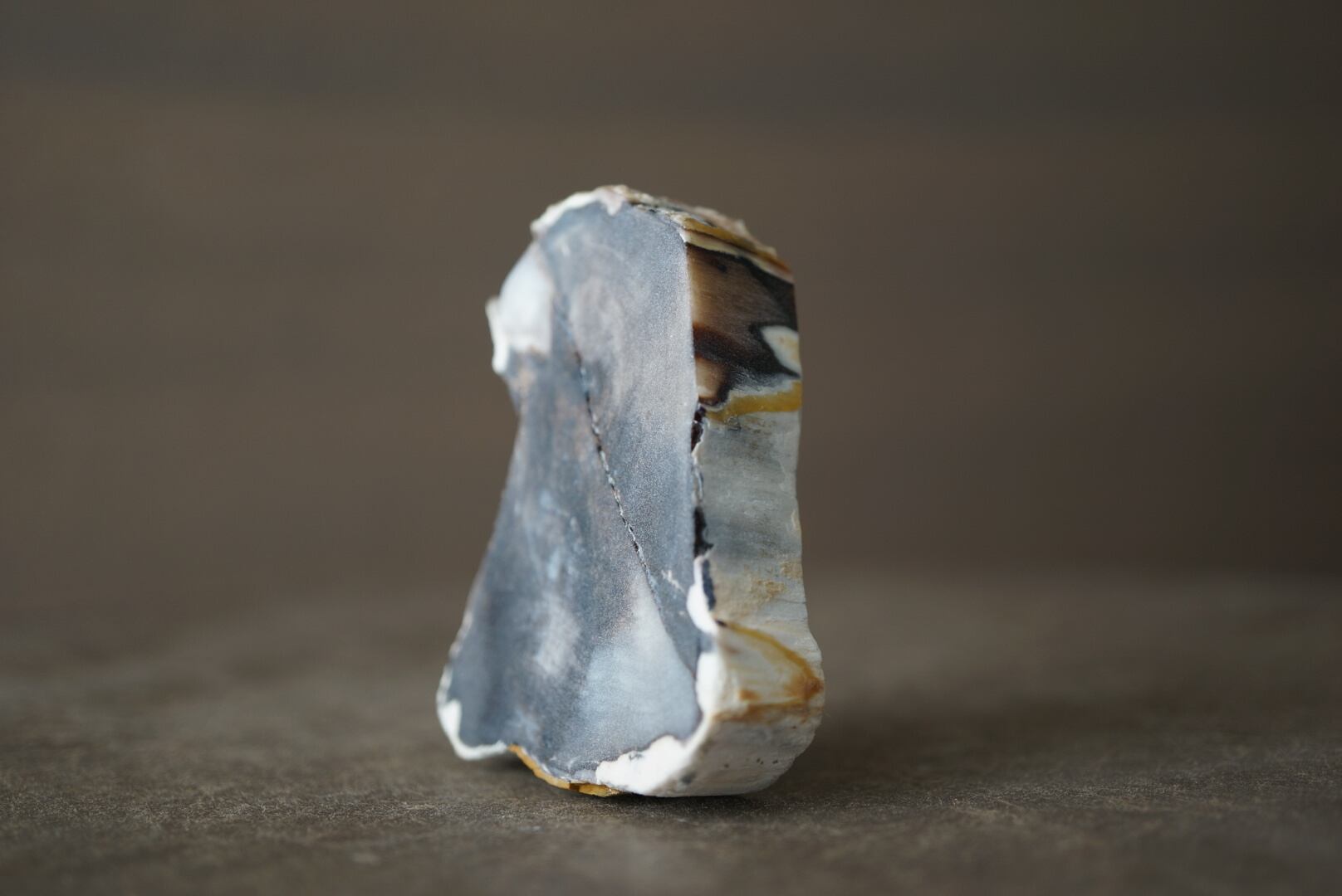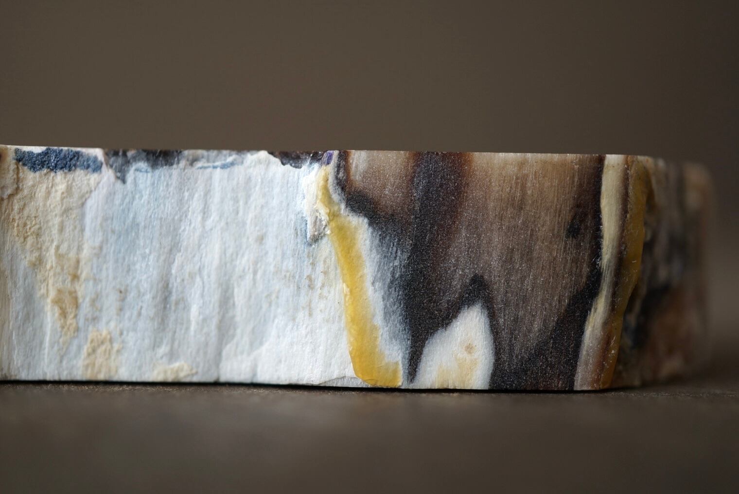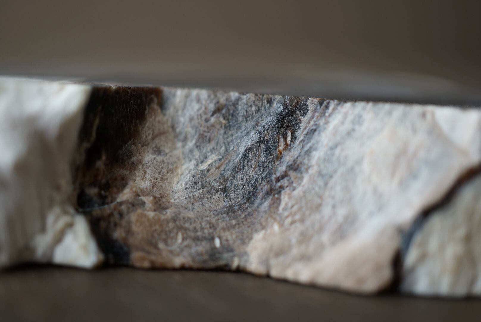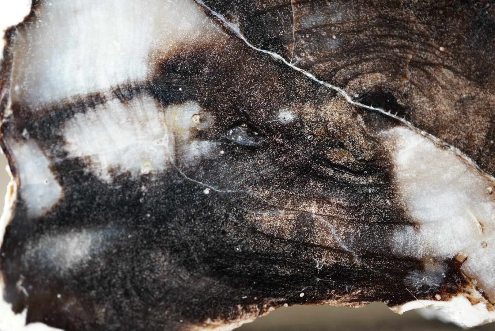 本産地の珪化木は白い縁取りと、深い黒色の美しいコントラストが特徴です。