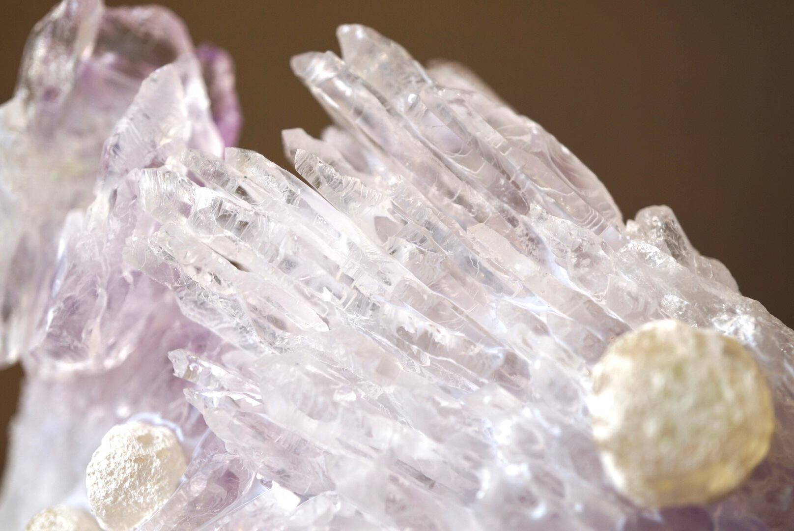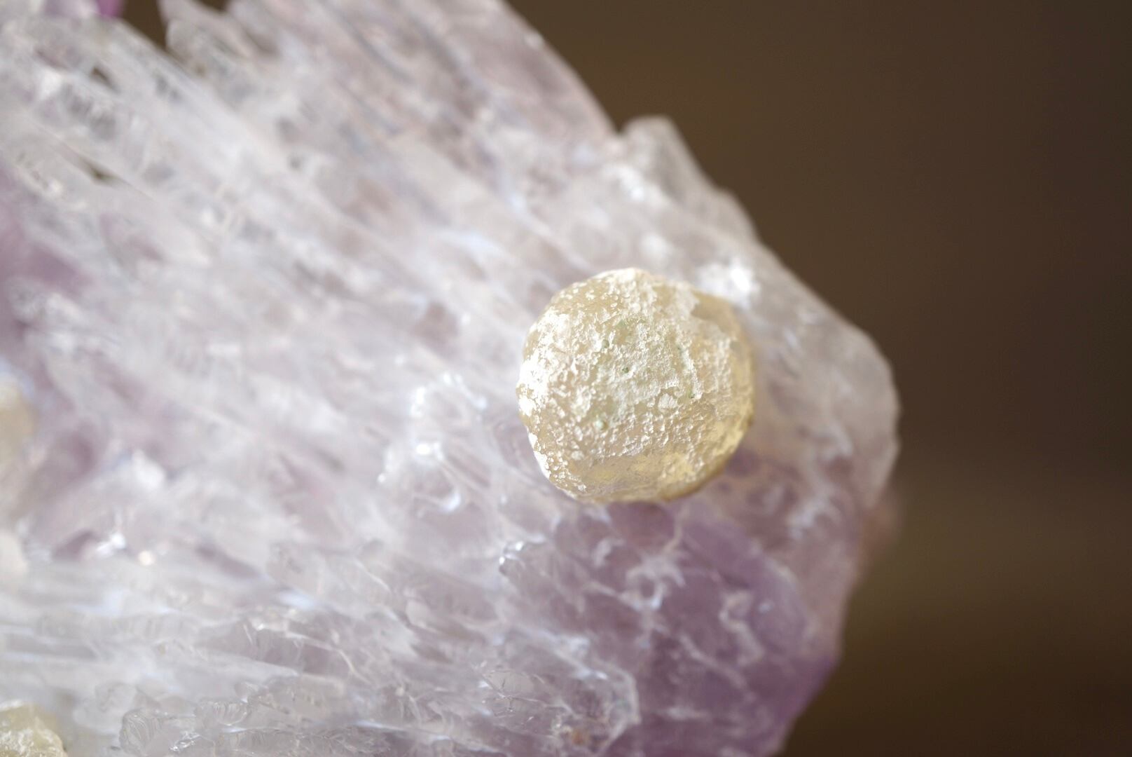 裏面には愛らしい球状のカルサイトが共生しています。