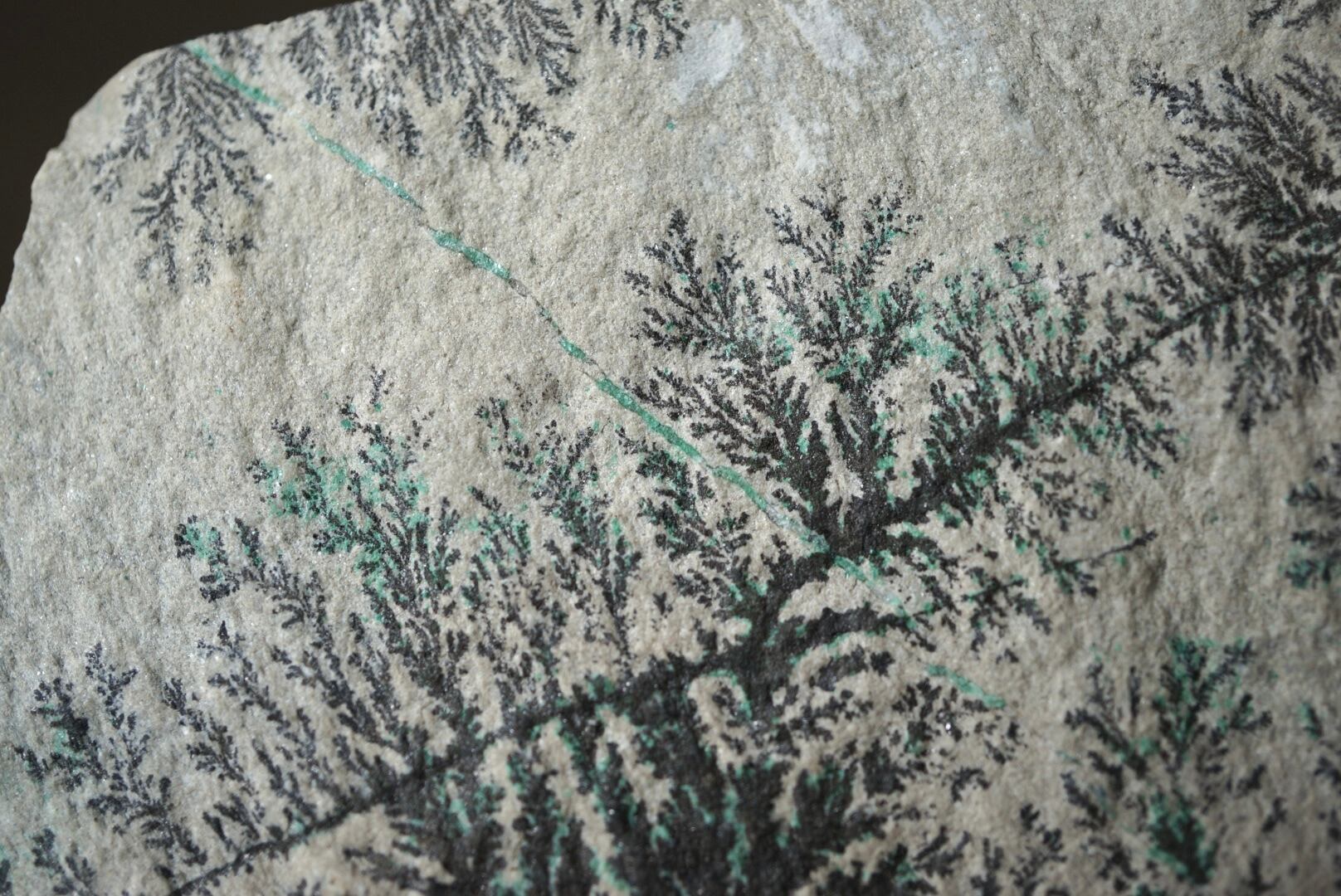 植物の化石のように見える模様は二酸化マンガンが岩の間に染み込んでできたもの。