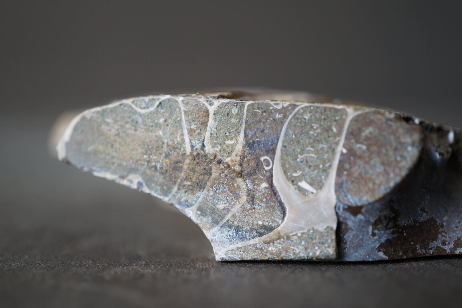 他にも光の角度でかすかに虹彩を帯びる遊色や、植物のような縫合線など、見どころの豊富な一石です。