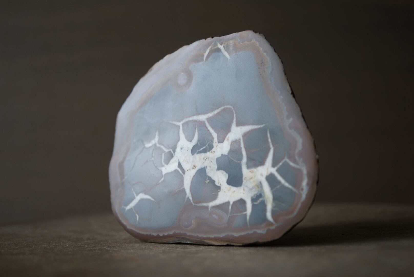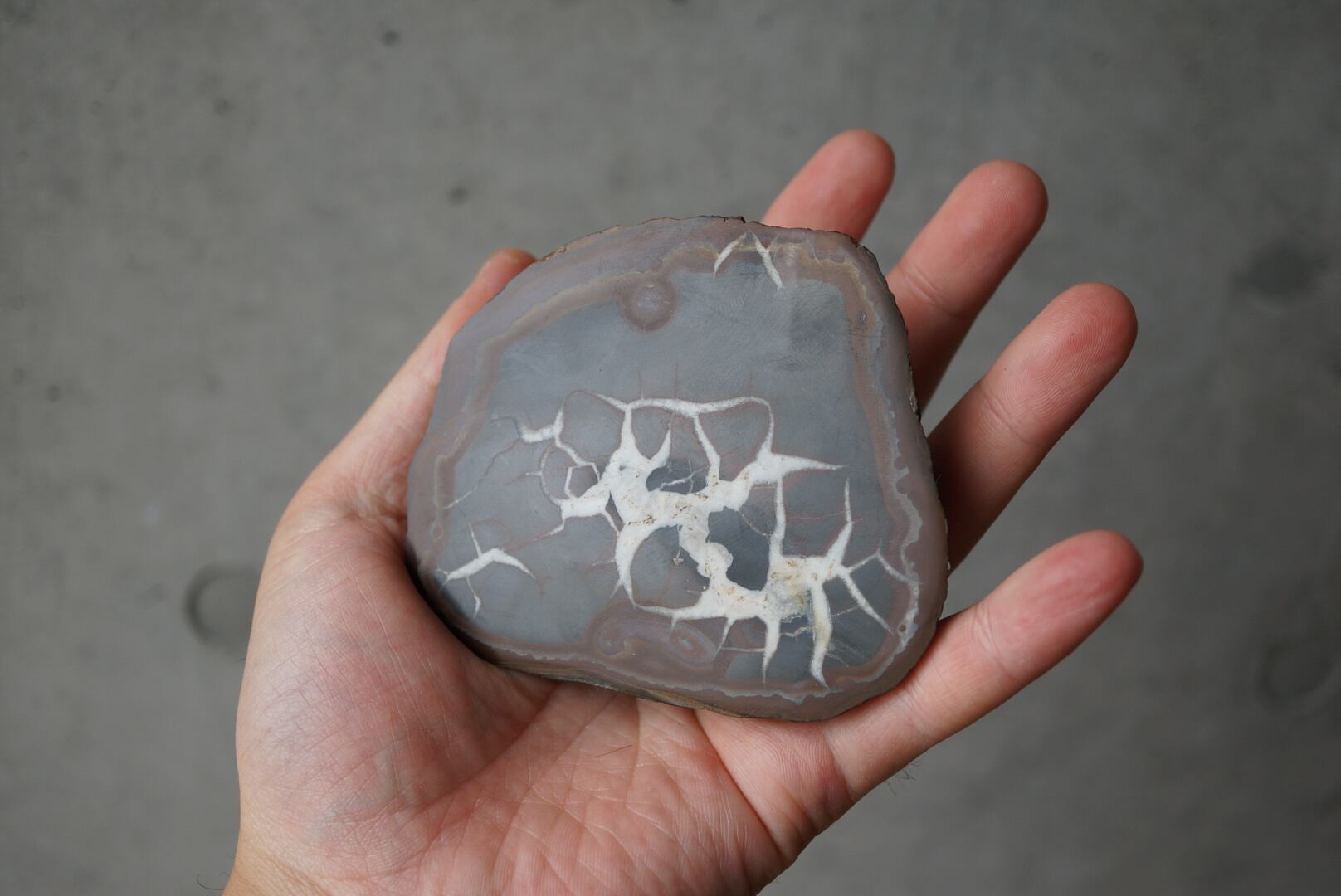 セプタリアンは、堆積岩中に生成されるノジュール(団塊)に分類される鉱物構造で、内部に放射状や蜘蛛の巣状の亀裂を持つことが特徴です。