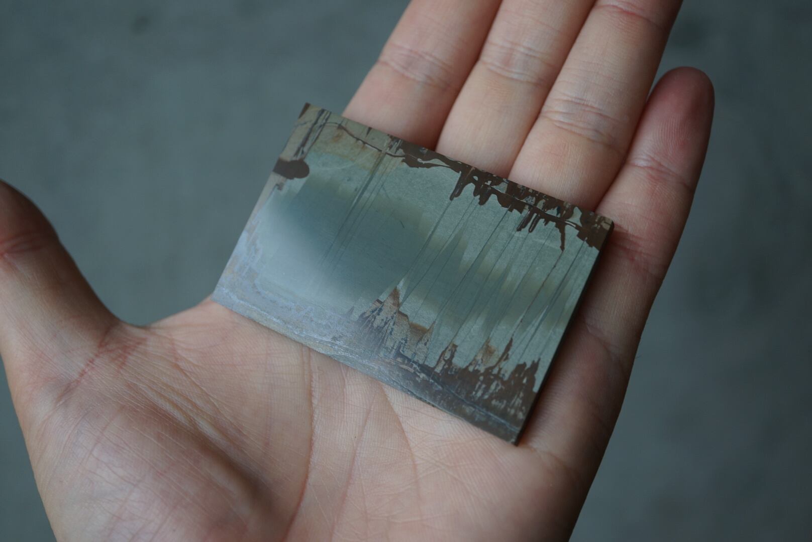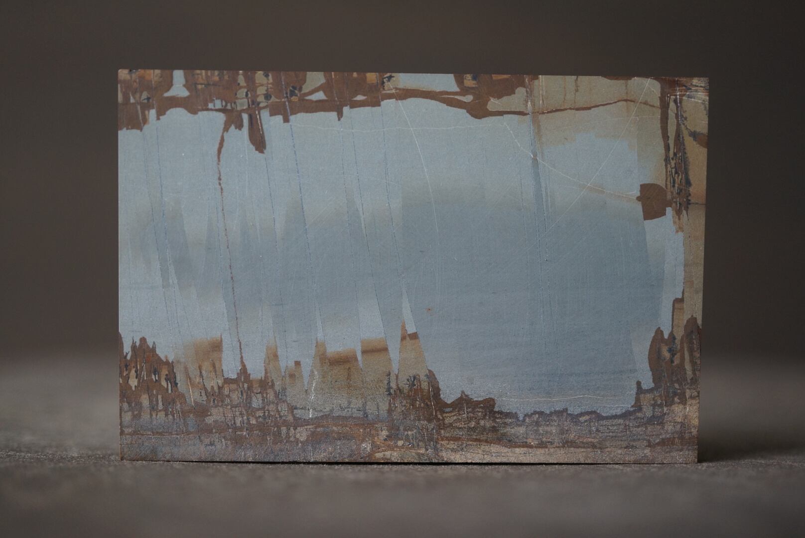 「Paesine」とはイタリア語で風景を意味し、荒涼な大地と空や海を思わせるその図像は見る者を幻想の世界へ誘います。