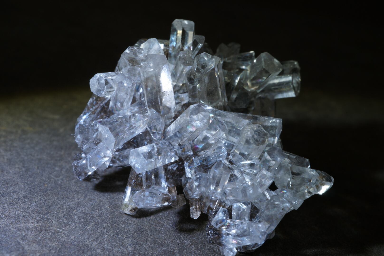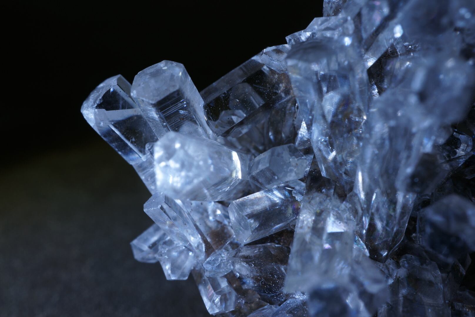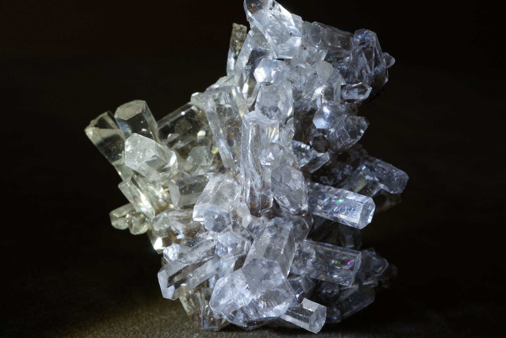見る角度により二重屈折が現れ、光の入り方によって仄かな虹色の干渉も観察できます。