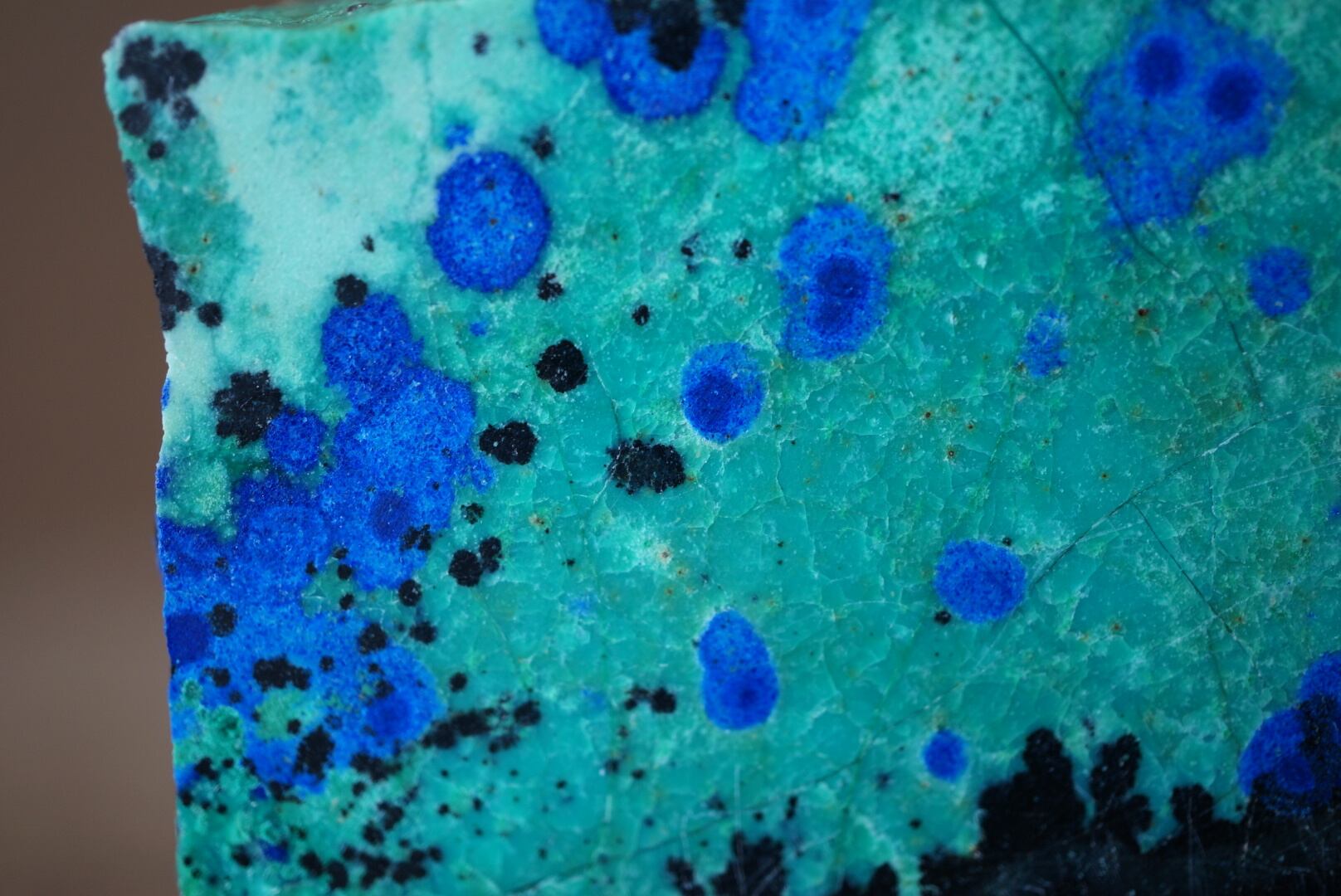 濃青のアズライトが花のように浮かんだ様が幻想的な一枚です。