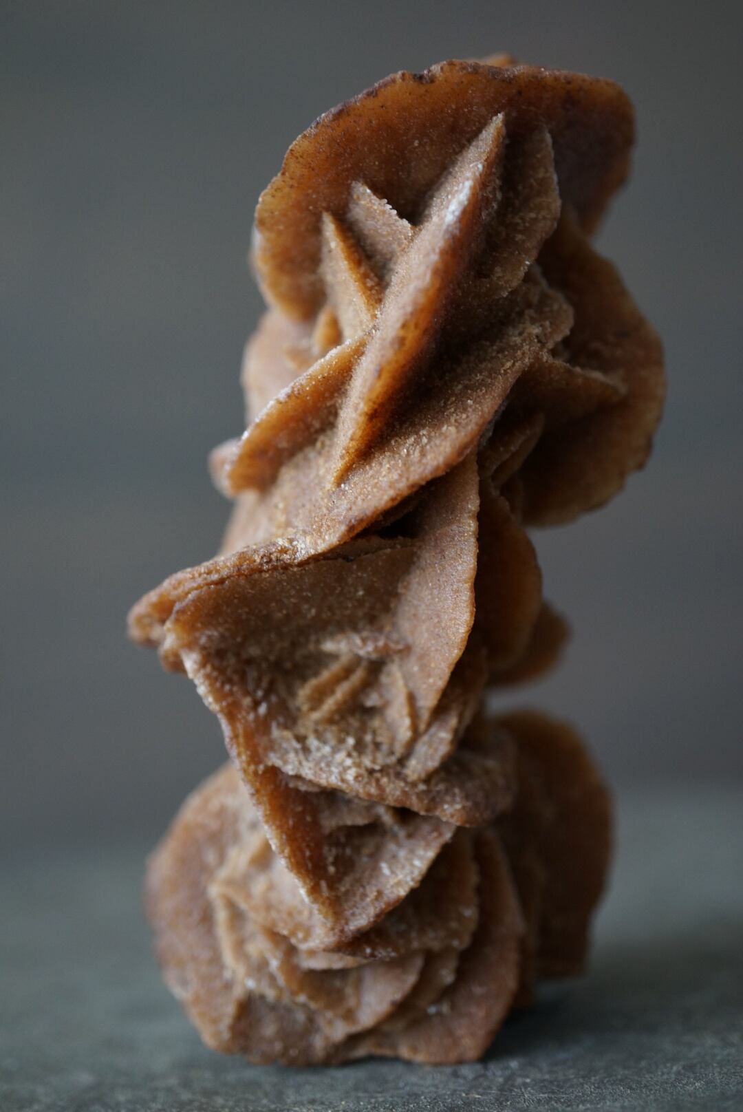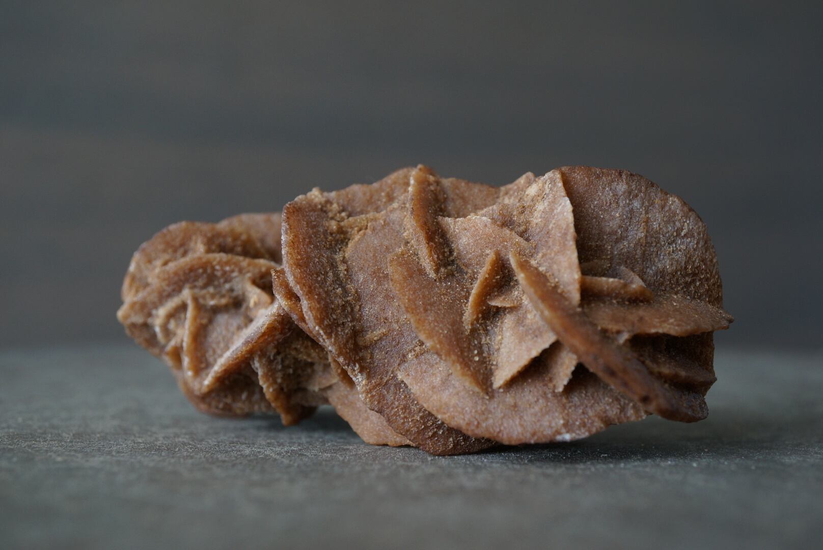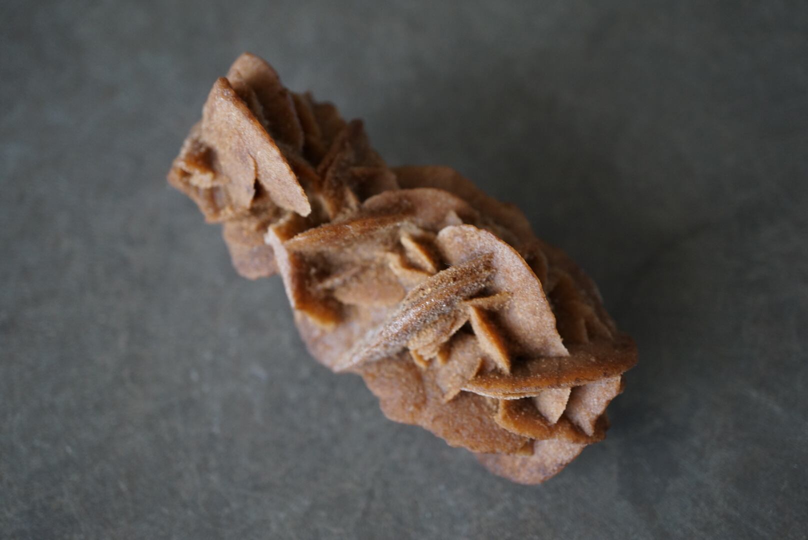 円盤状の重晶石が集合した、現代彫刻のようなサハラ砂漠産デザートローズです。