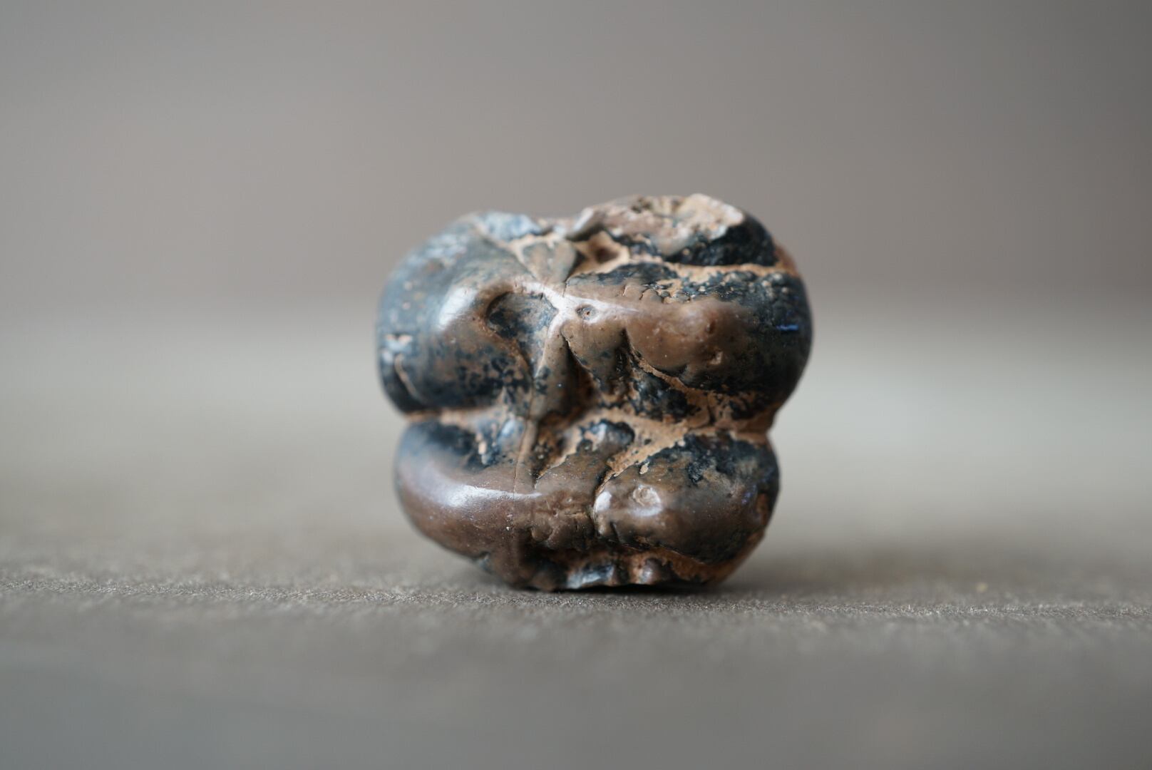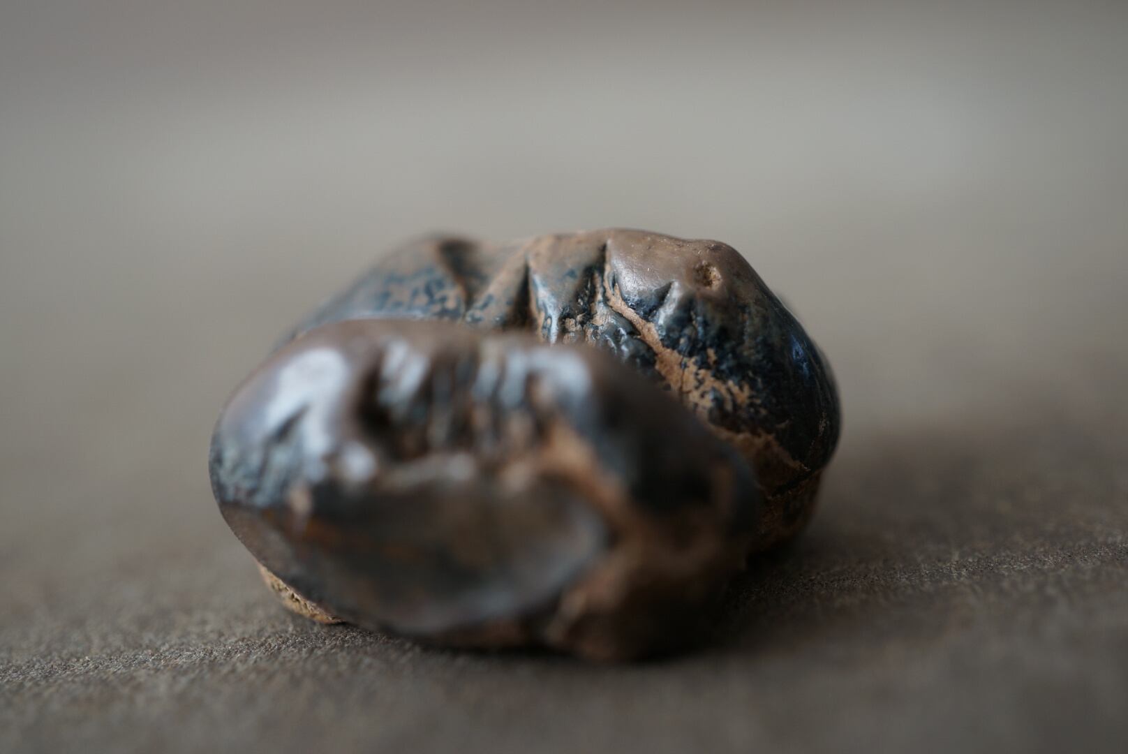 皺の寄った表面の質感と複雑な咬合面の形状は、時間の流れと機能美の融合を思わせます。