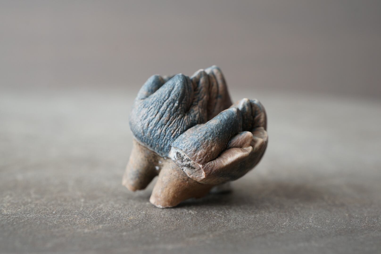 皺の寄った表面の質感と複雑な咬合面の形状は、時間の流れと機能美の融合を思わせます。