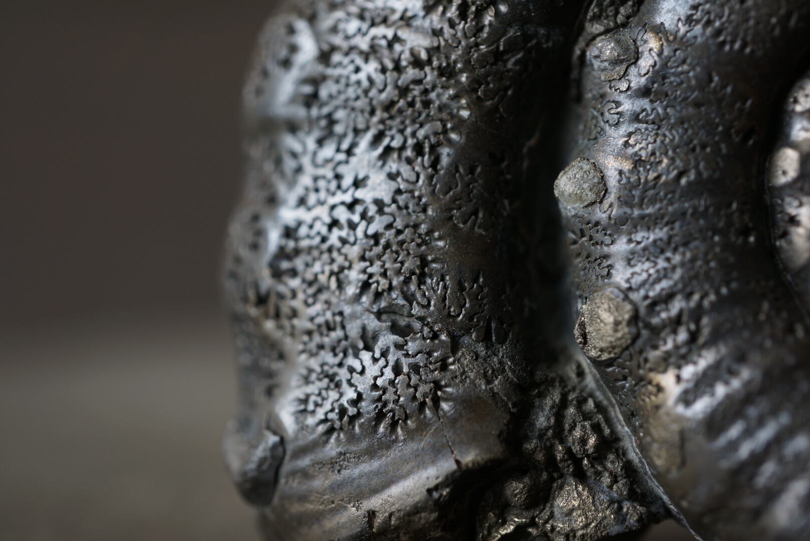ジュラ紀(約2億130万年前から約1億4550万年前)の海に生息していたアンモナイトの遺骸が、バクテリアによる分解と鉄イオン/硫化物の反応により、黄鉄鉱によって置換され、金属光沢をもつ硬質な物質へと変化したものです。