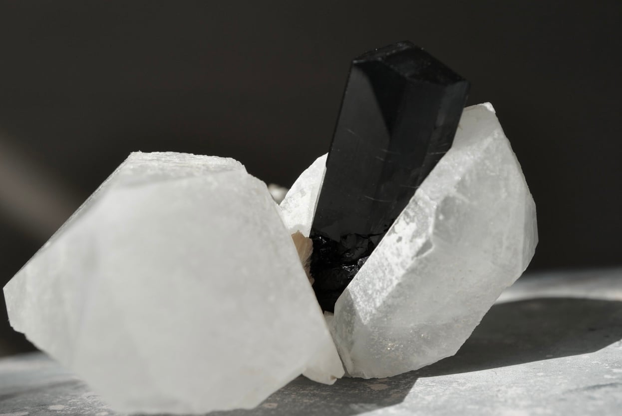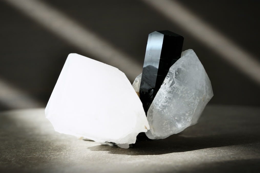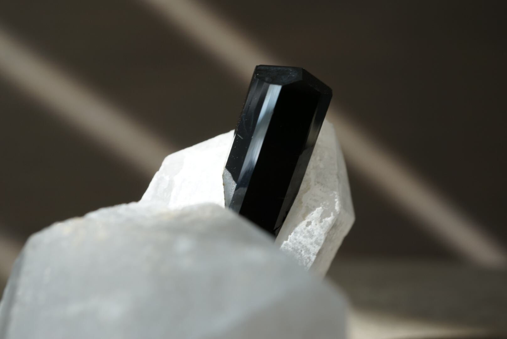 トルマリンは「電気石」とも呼ばれるホウ酸塩鉱物で、その中でも漆黒の結晶は「ショール(ブラックトルマリン)」と呼ばれます。