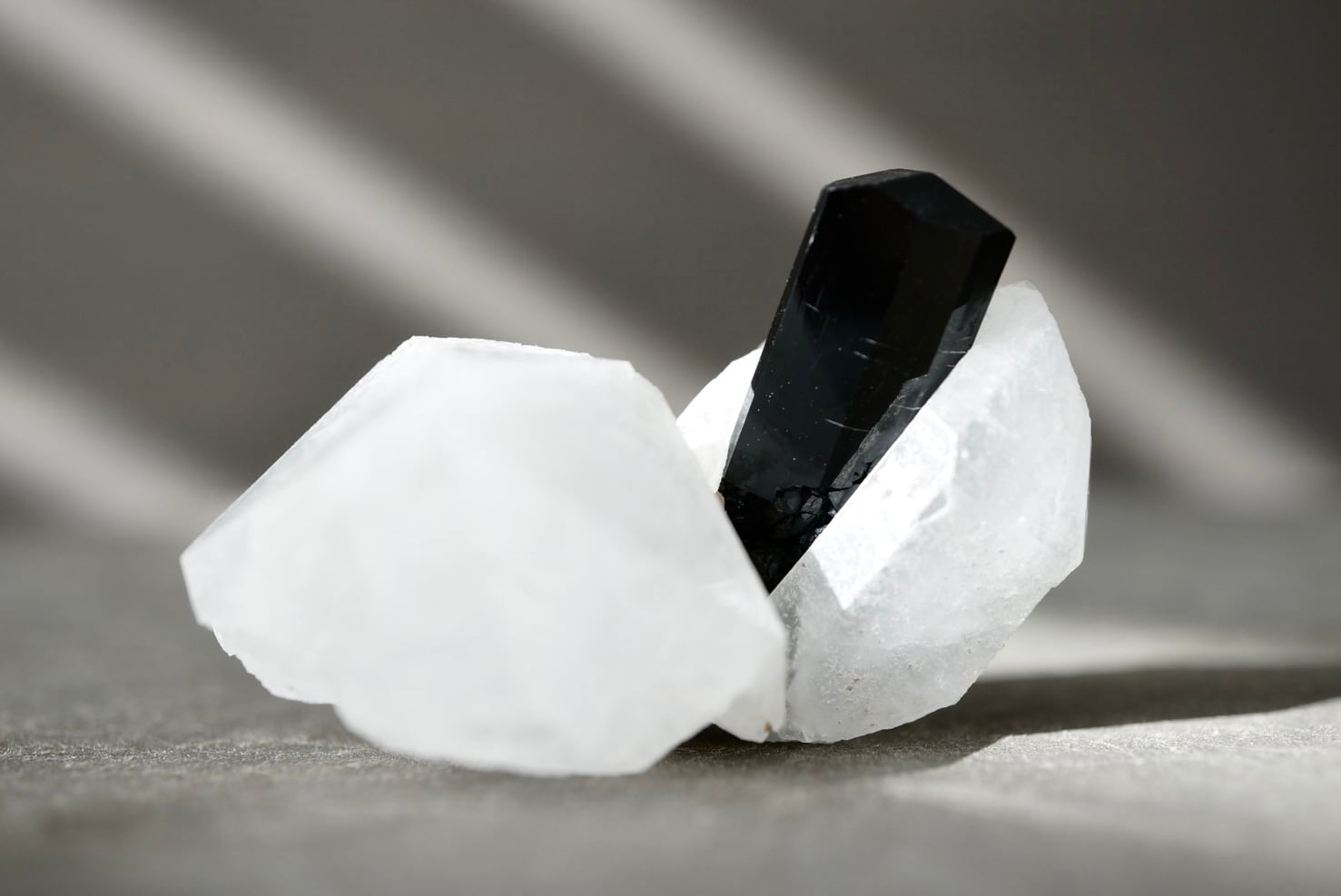 モノクロームの鮮烈なコントラストが印象的なパキスタン産ブラックトルマリン/クォーツです。