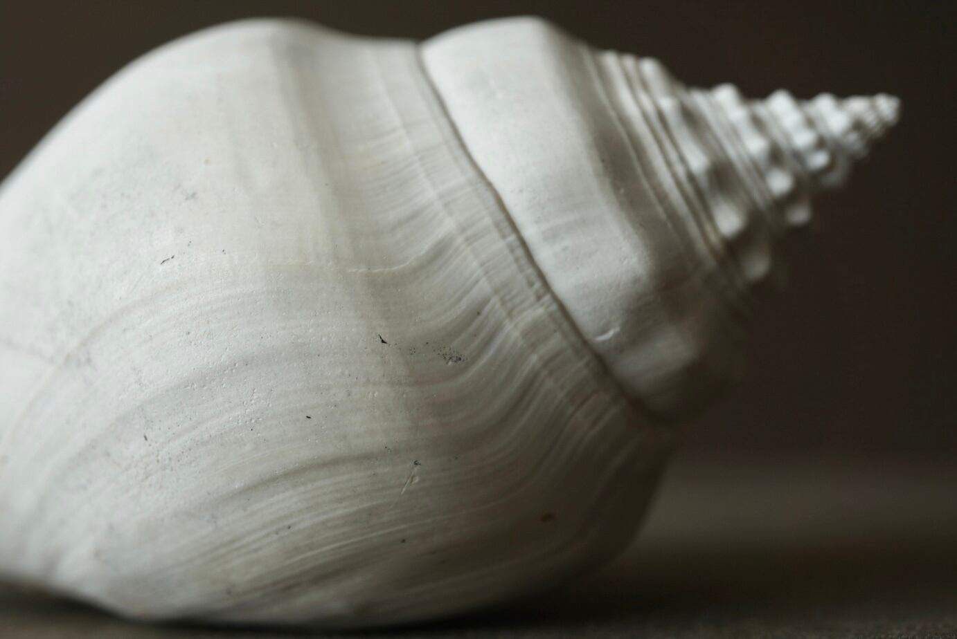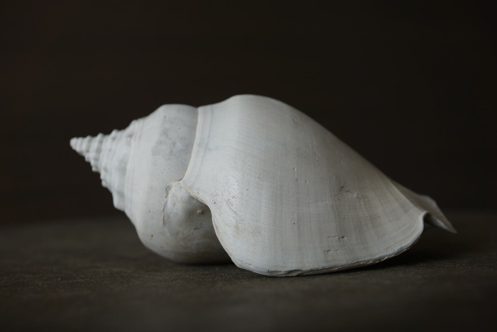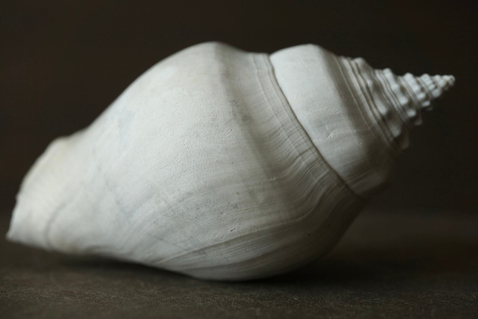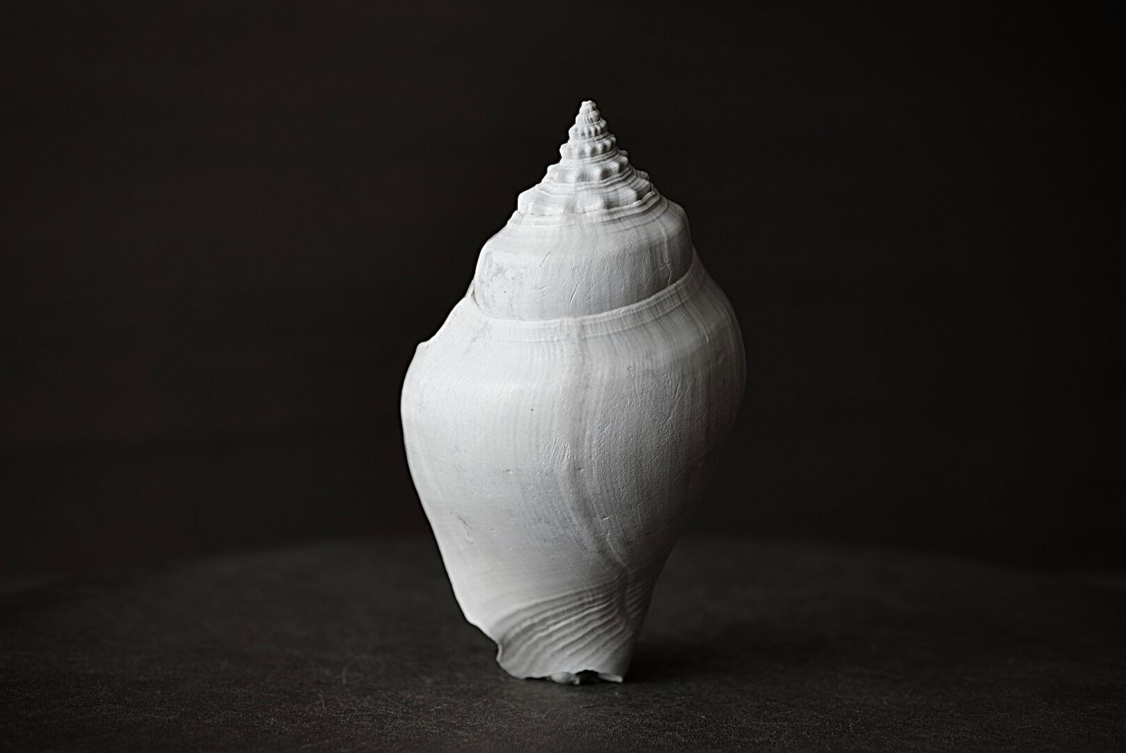 約100万年前(更新世)のフロリダ沿岸に生息していた大型の巻貝 Strombus alatus の化石です。ストロンブス類は現在も熱帯・亜熱帯の浅海に広く分布し、食用や装飾として人々に馴染み深い巻貝ですが、本石は地層中で長い時間を経て石化し、現生標本とは異なる重みと、白色の上品な風合いを纏っています。