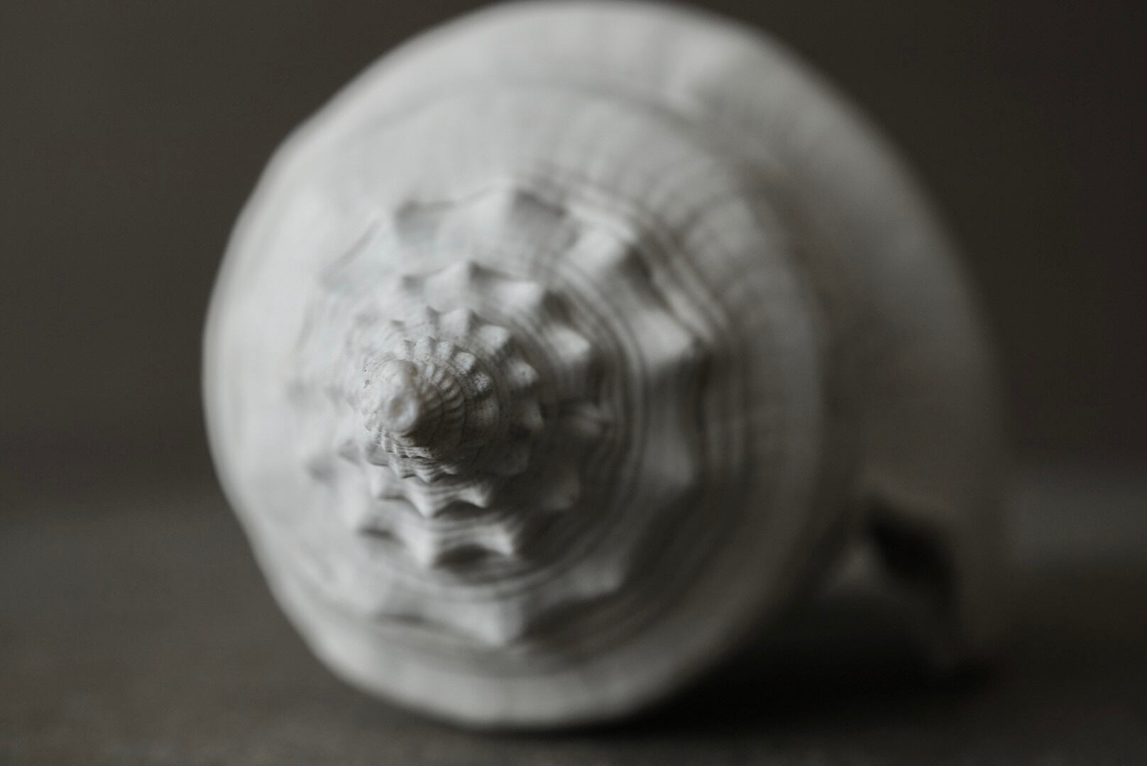 螺旋状に立ち上がる塔部から、ふくらみを帯びた体部へと続くフォルムは、まるで石膏彫刻を想わせる、静謐で、芸術的な佇まいです。