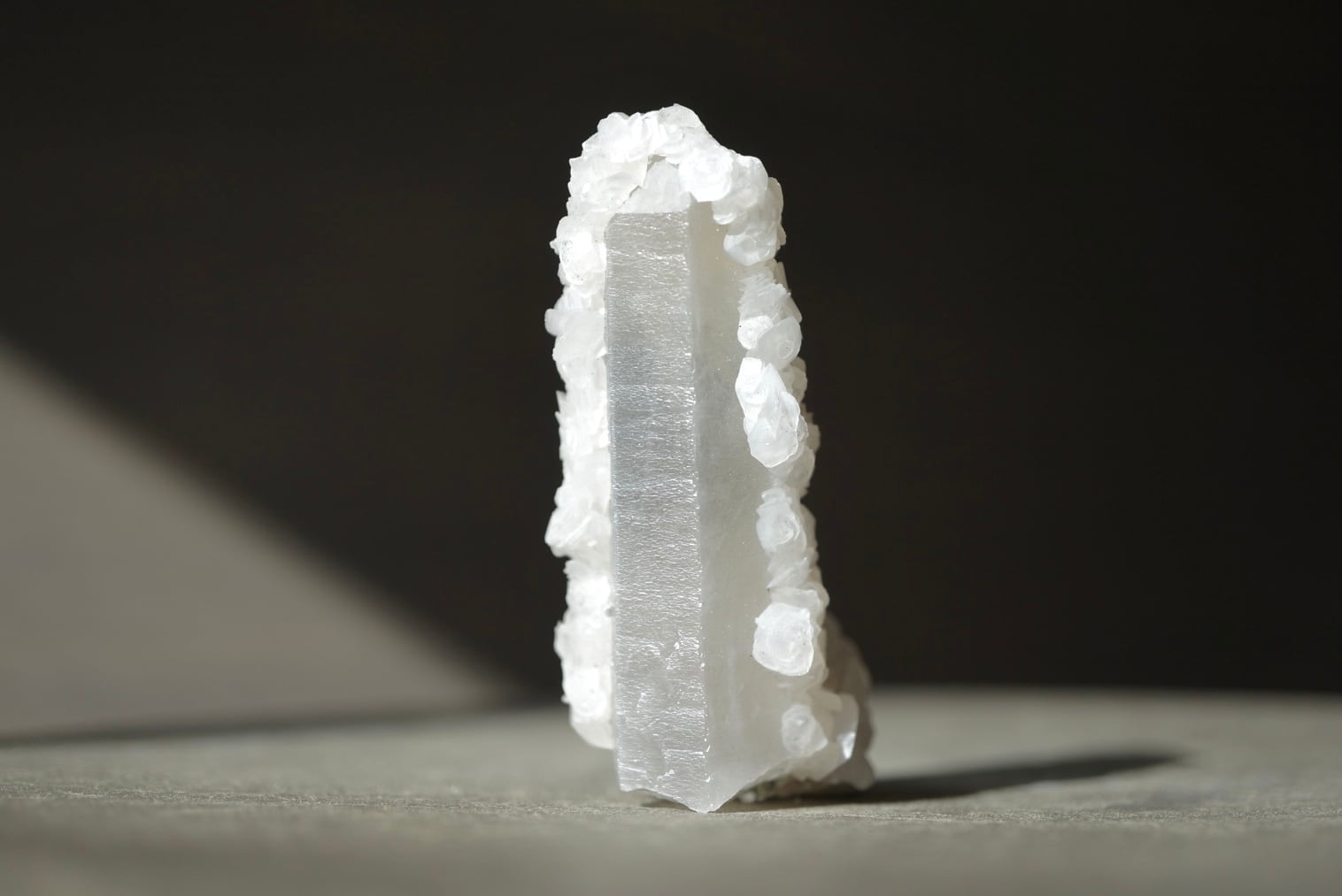 水晶が純白のベールを纏っているかのような、極めて清廉なオーラを醸す一石です。