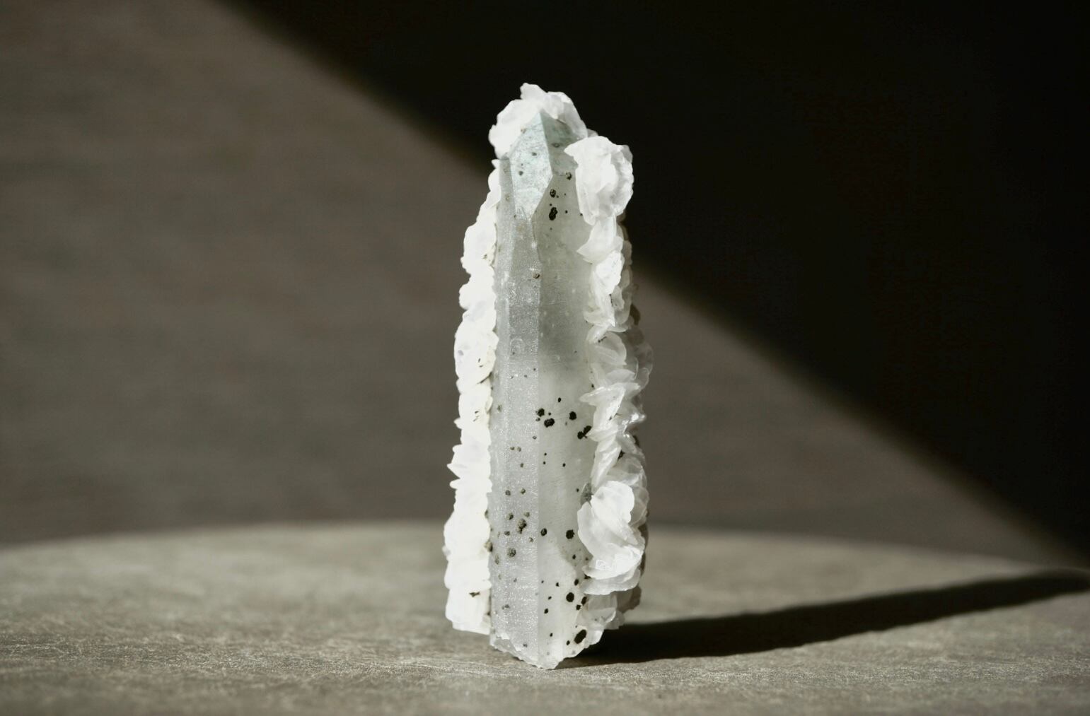 水晶が純白のベールを纏っているかのような、極めて清廉なオーラを醸す一石です。