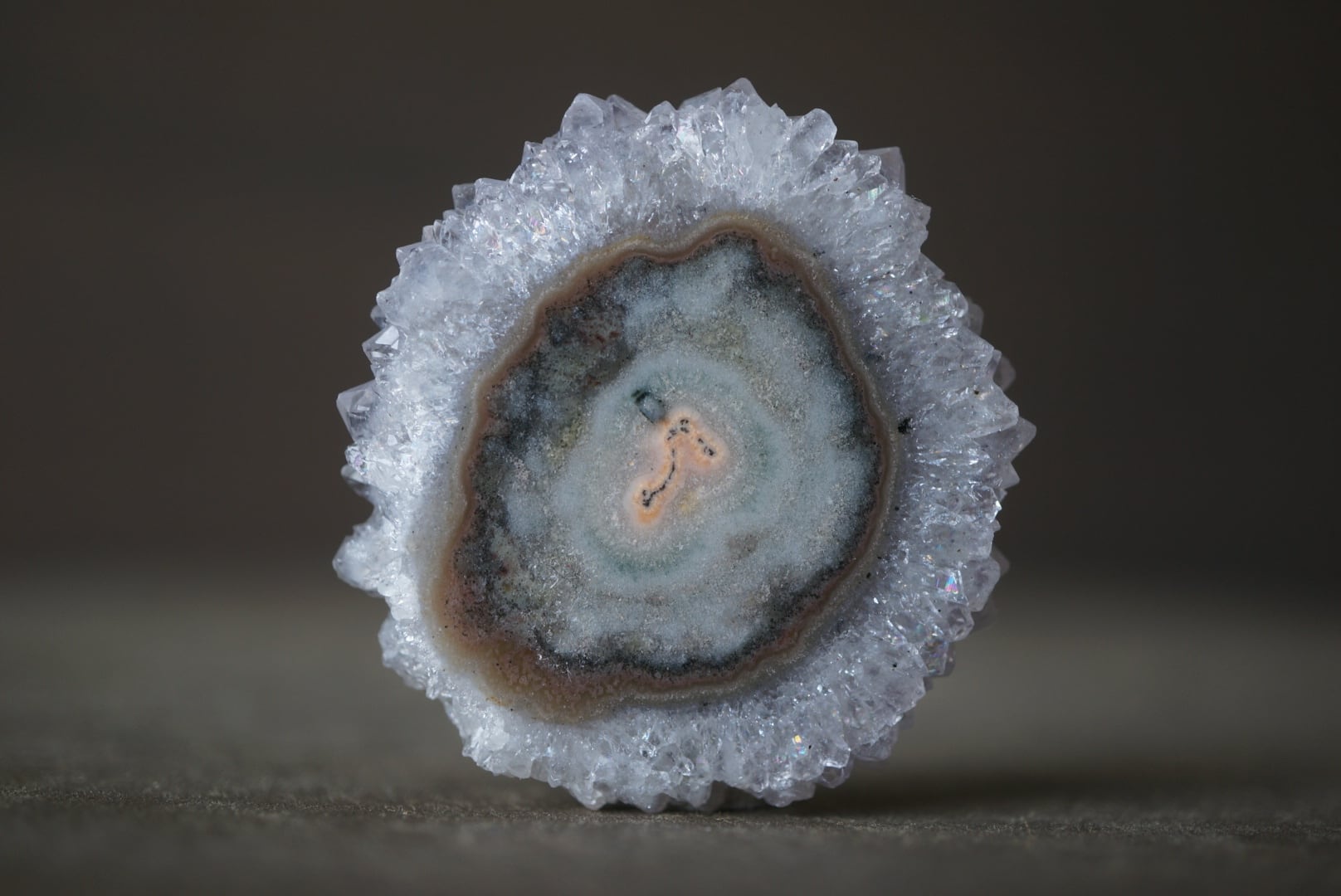鍾乳状のアメシストをスライスし、両面研磨したものになります。