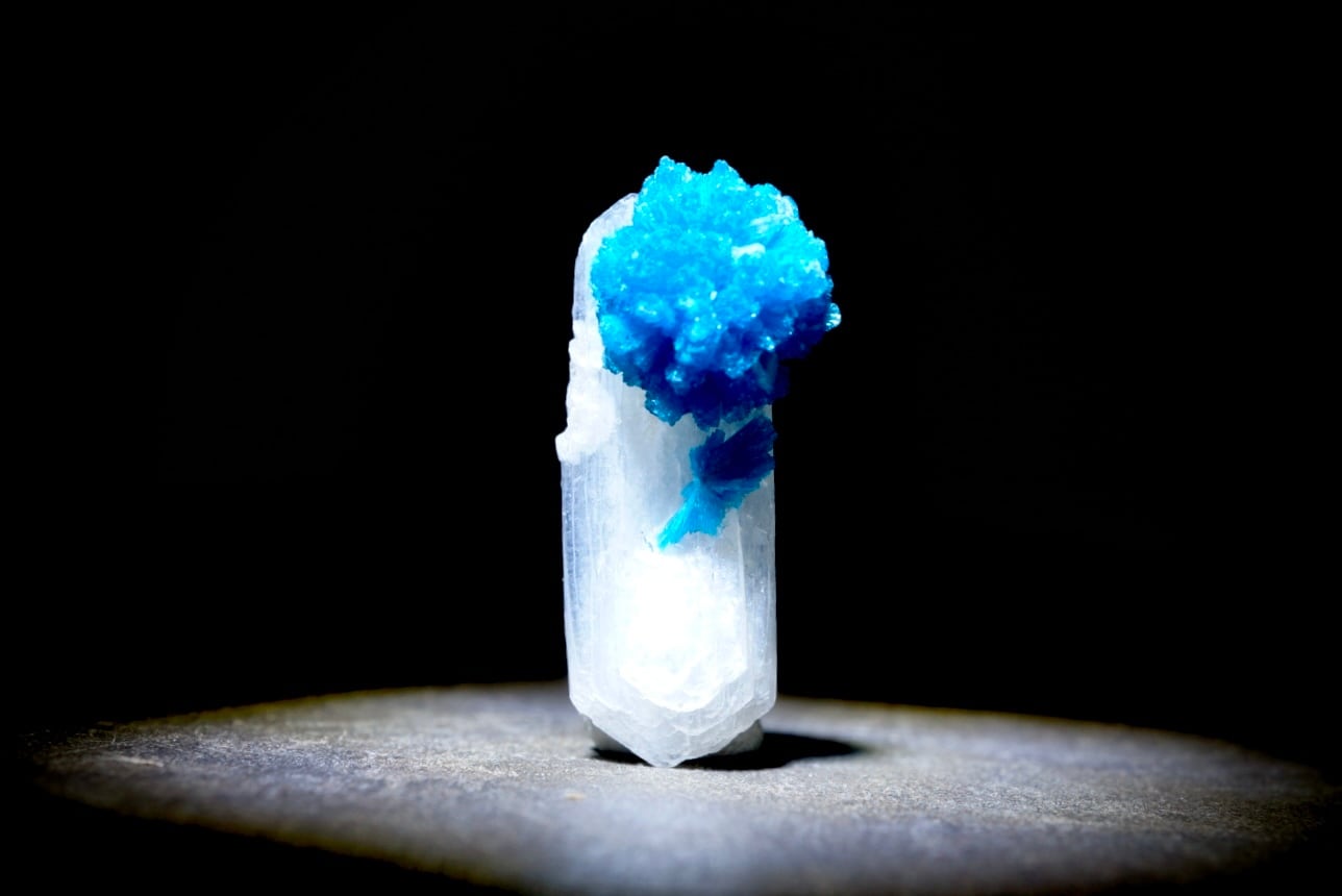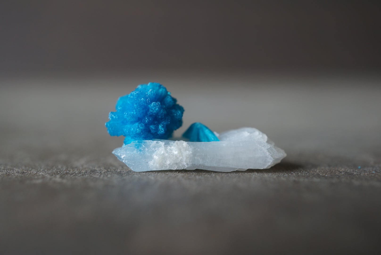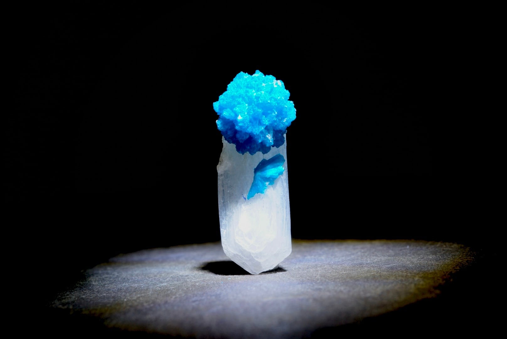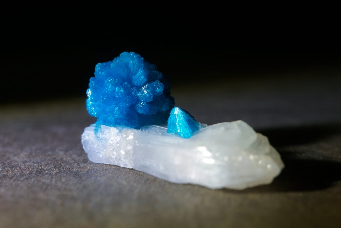 鮮烈なカバンサイトの青と細やかな光沢を放つヒューダンライトが美しいコントラストを見せています。
