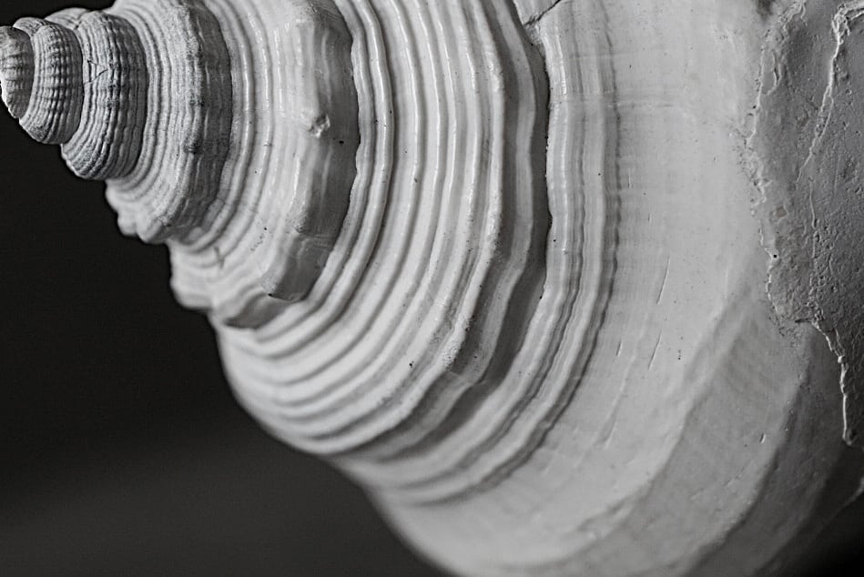 約100万年前(更新世)のフロリダ沿岸に生息していた大型の巻貝 Strombus alatus の化石です。ストロンブス類は現在も熱帯・亜熱帯の浅海に広く分布し、食用や装飾として人々に馴染み深い巻貝ですが、本石は地層中で長い時間を経て石化し、現生標本とは異なる重みと、白色の上品な風合いを纏っています。