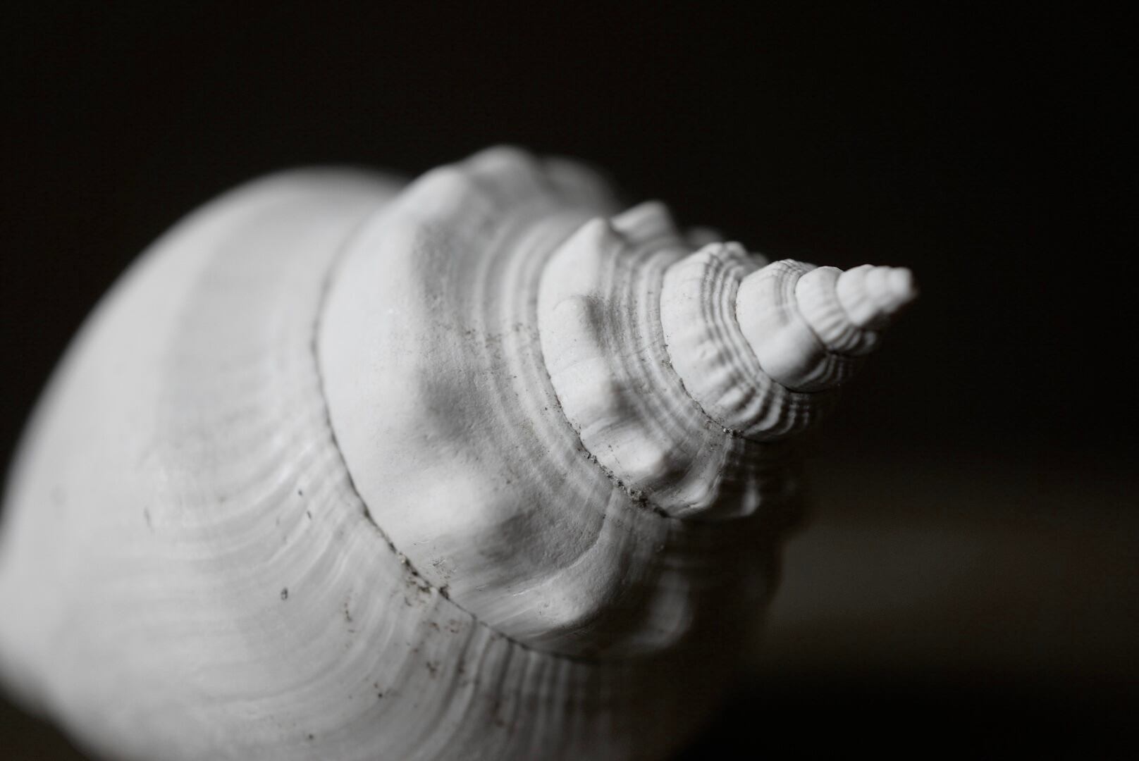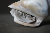 約100万年前(更新世)のフロリダ沿岸に生息していた大型の巻貝 Strombus alatus の化石です。ストロンブス類は現在も熱帯・亜熱帯の浅海に広く分布し、食用や装飾として人々に馴染み深い巻貝ですが、本石は地層中で長い時間を経て石化し、現生標本とは異なる重みと、白色の上品な風合いを纏っています。