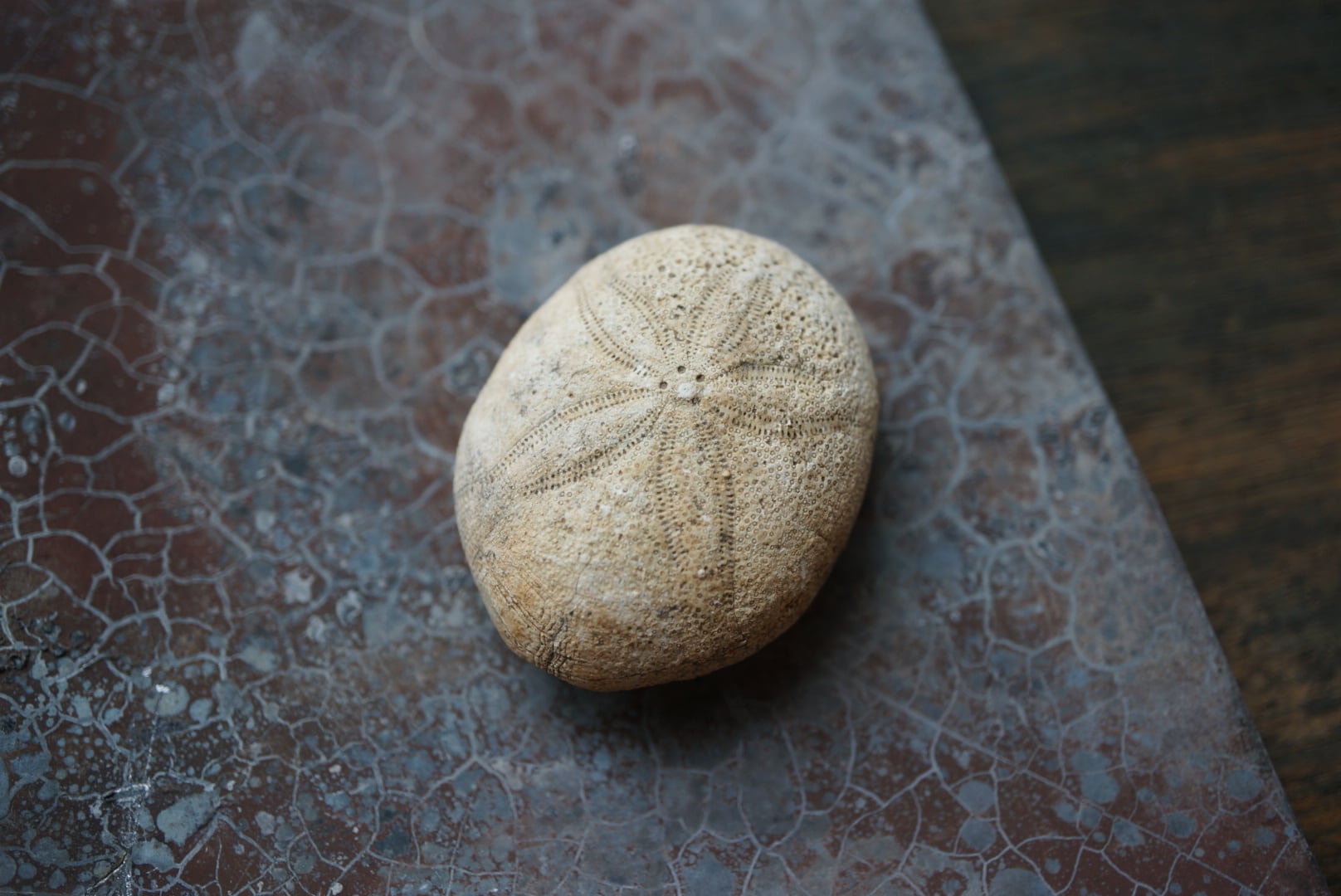 フランス南西部、ジロンド県レスパール=メドックの地層から採取された約5000万年前(始新世)のウニ化石です。