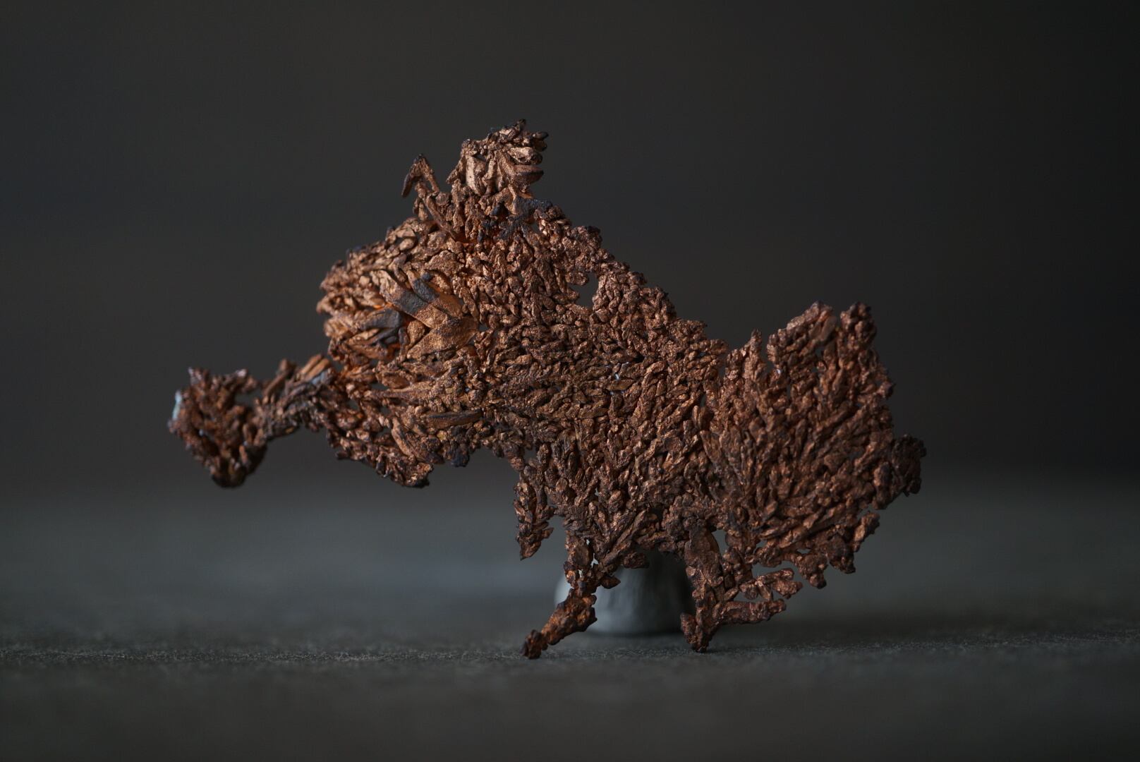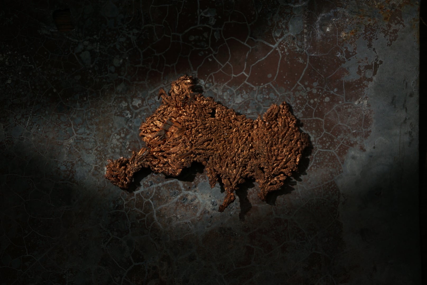 自然銅とは地殻内の熱水作用や酸化還元環境の変化により、鉱石の中で金属銅が自生的に形を成し、人工的な精錬を経ずに現れる希少な姿です。