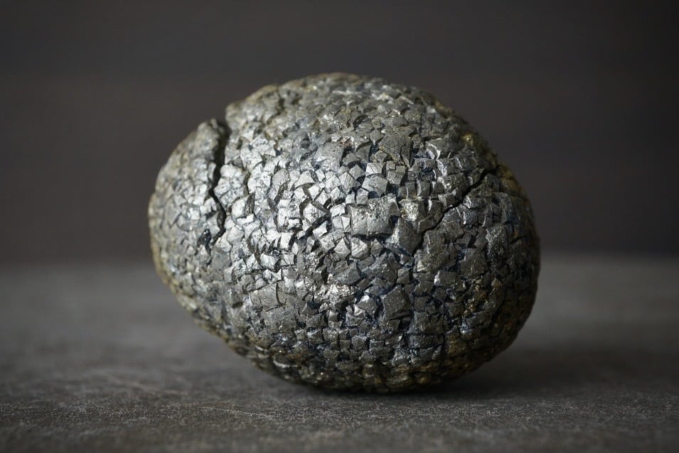 鋭利な金属光沢はどこか工業的でありながら、有機体のようなまとまりを持つ不思議な佇まいです。