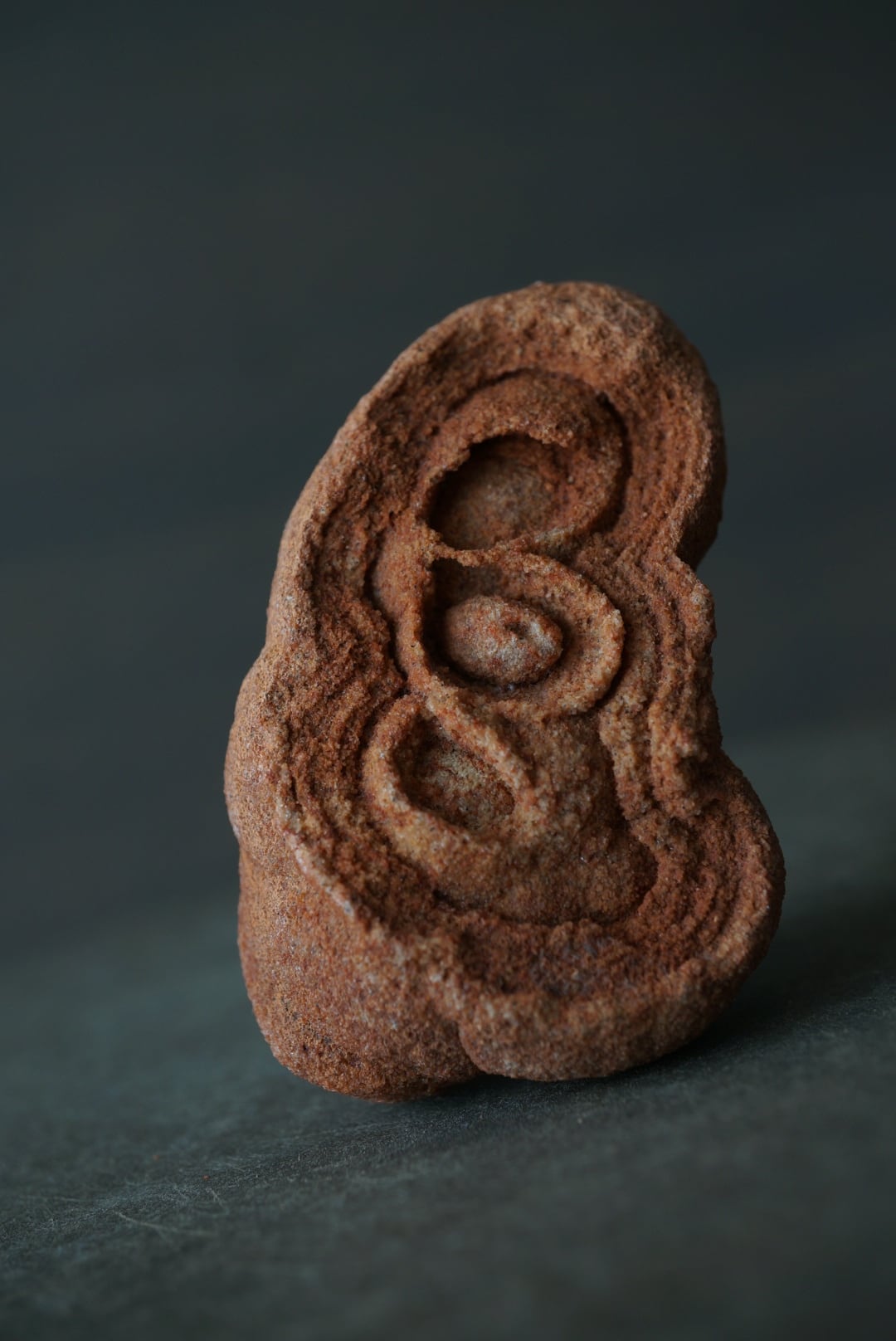 モロッコ産のものは同心円状の赤い球状で産出され、中でも本石のように目玉模様が連なって表れたものは大変希少です。