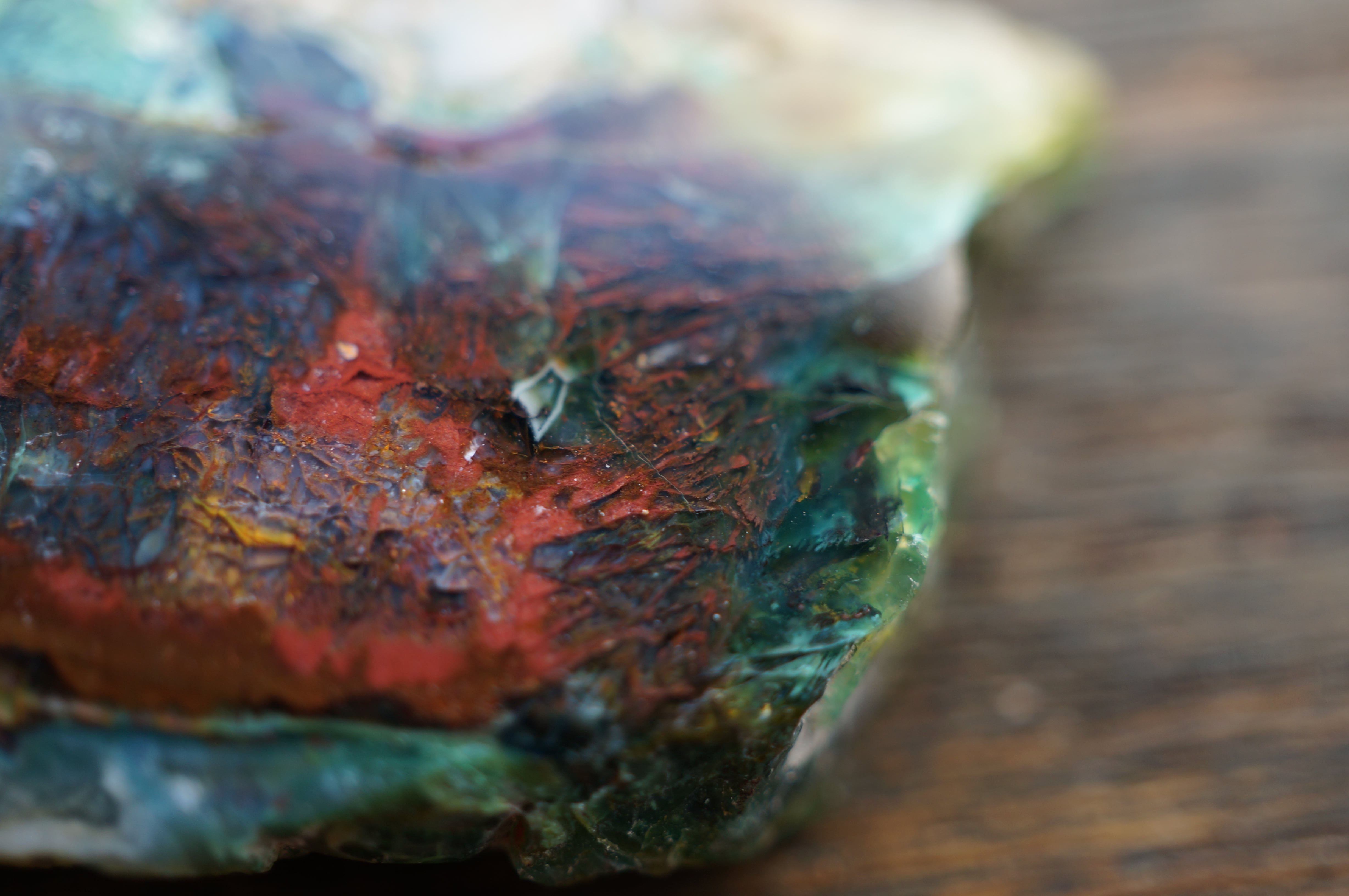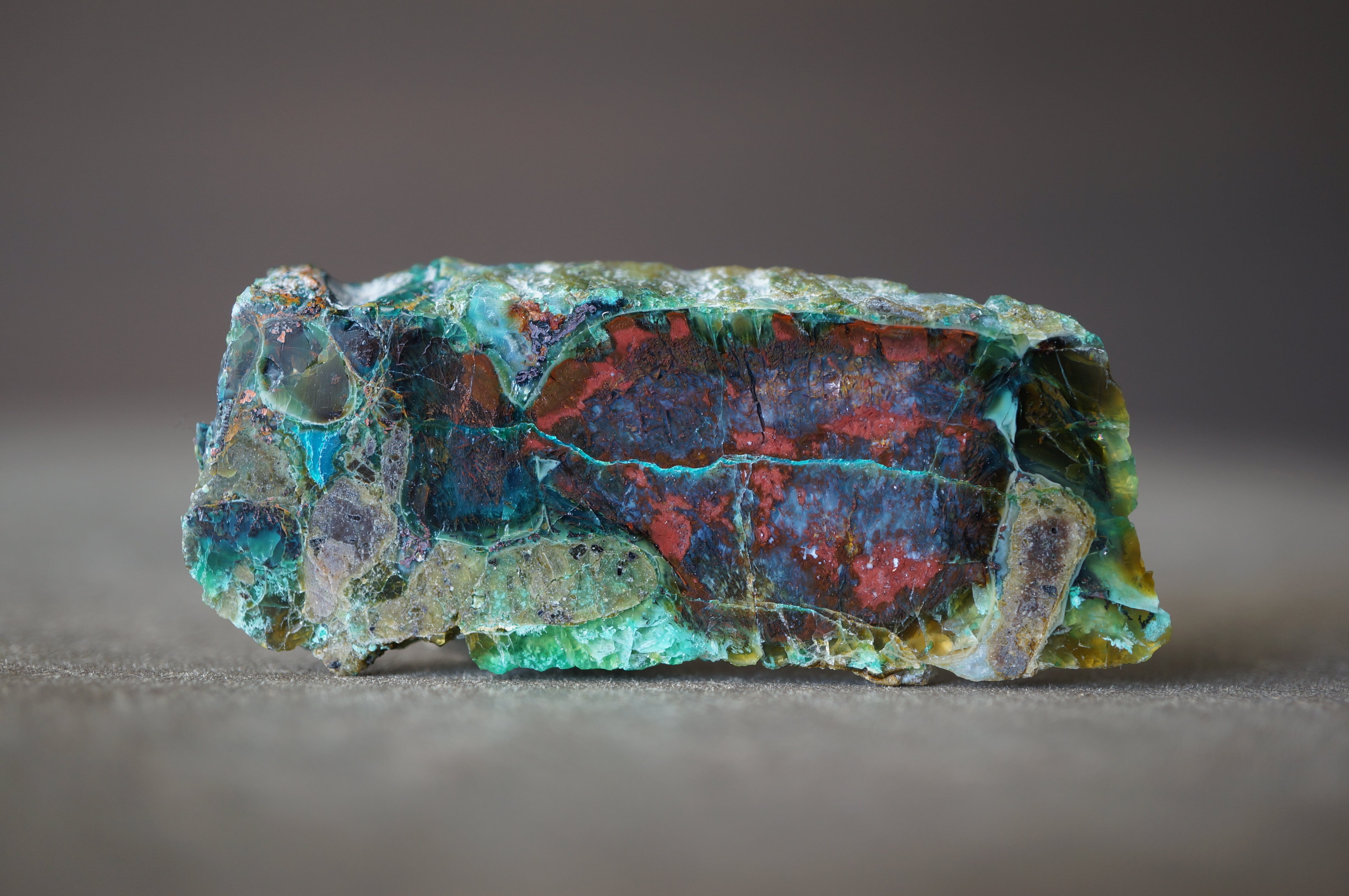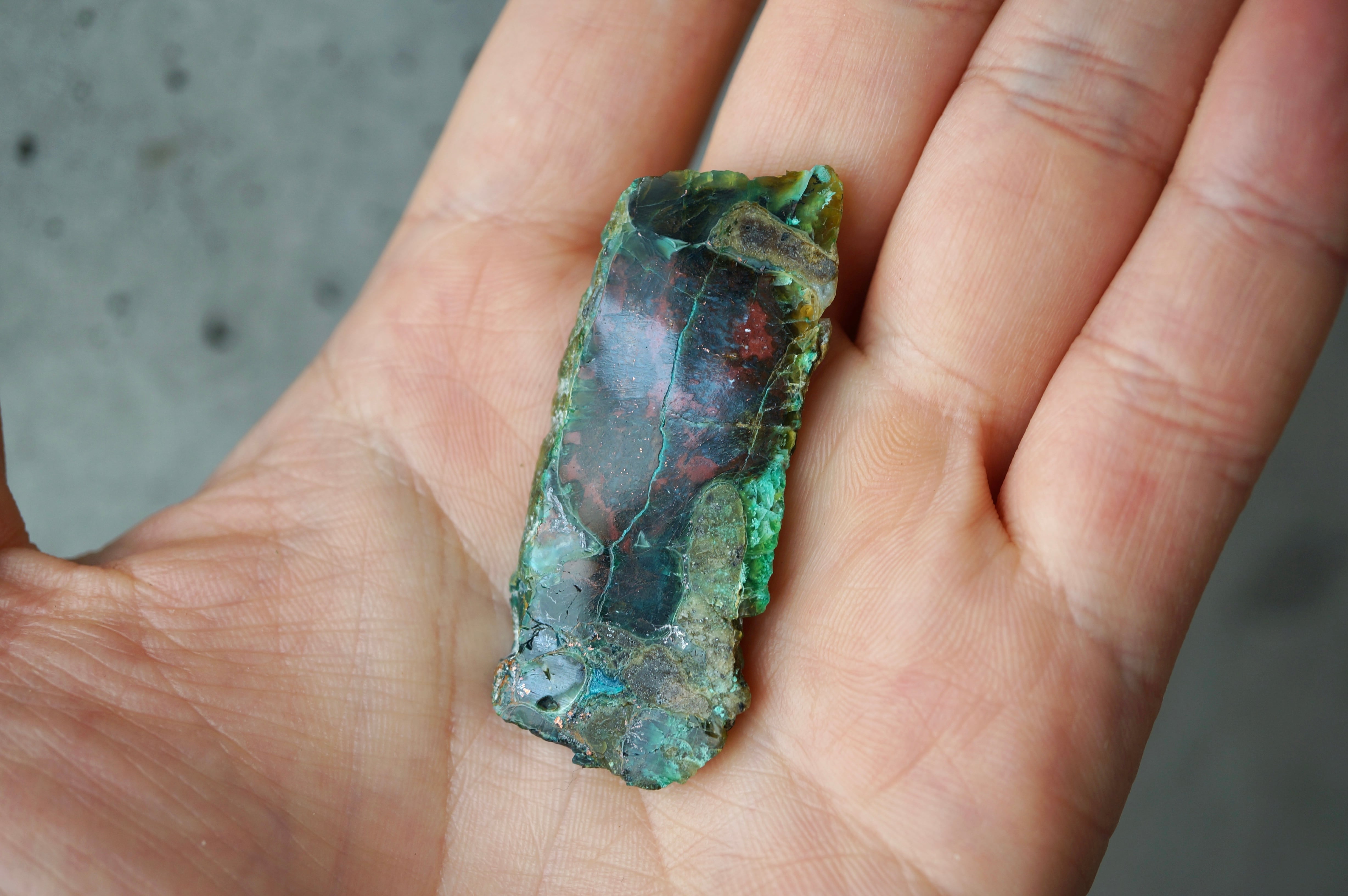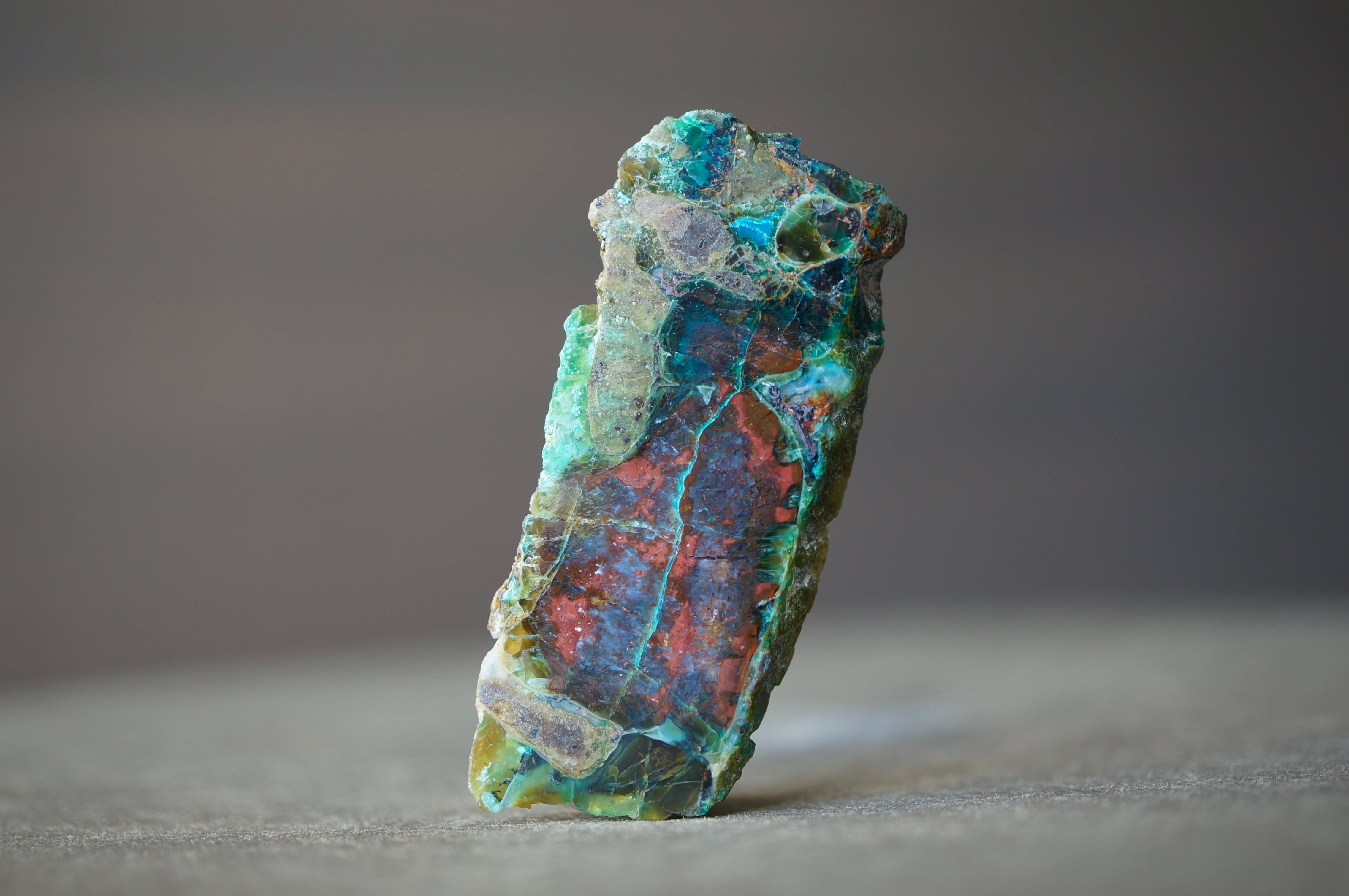 太古の木が長い時間をかけて珪化する過程で、銅を含む鉱液によって鮮やかに彩られました。