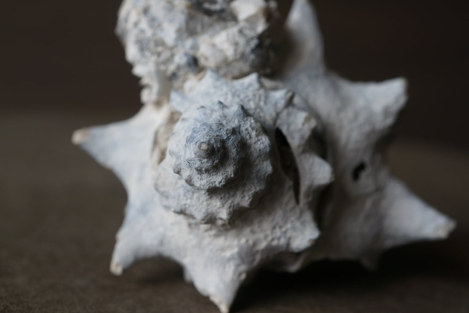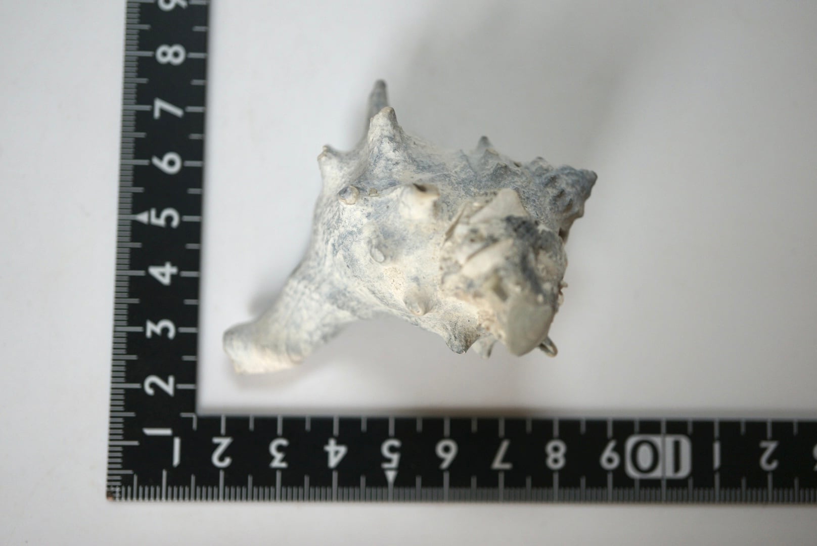 殻頂から外唇にかけて棘状の突起を備え、渦巻きながら発達する形態は捕食に適した構造とされています。