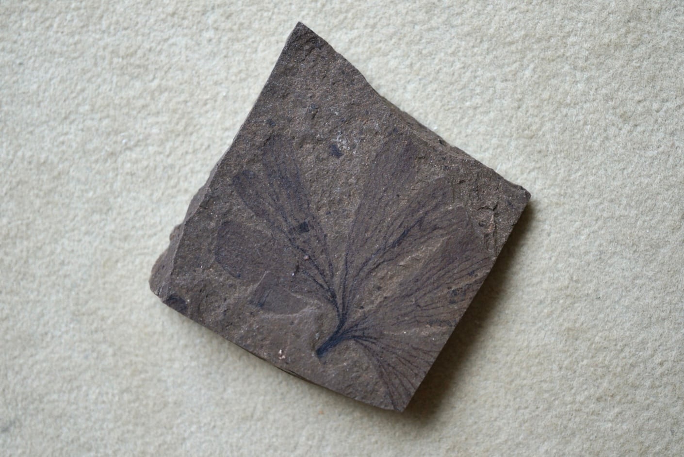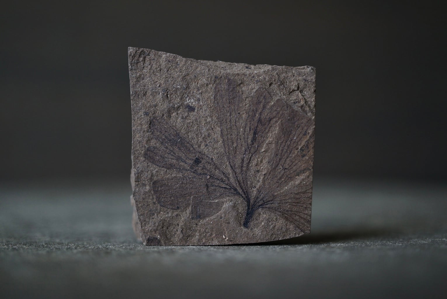現生種としても馴染み深いイチョウ属の葉が、かつての温暖な森の空気をそのまま封じ込めたように美しく保存されています。