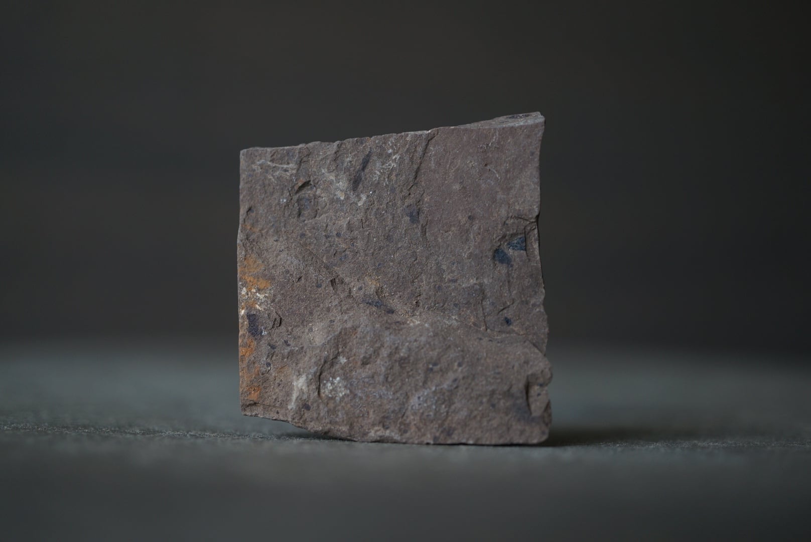 ブリティッシュコロンビア州のCache Creek周辺は、湖成層に植物化石が多く含まれる地域として知られ、泥質岩に黒褐色の炭化痕として刻まれています。