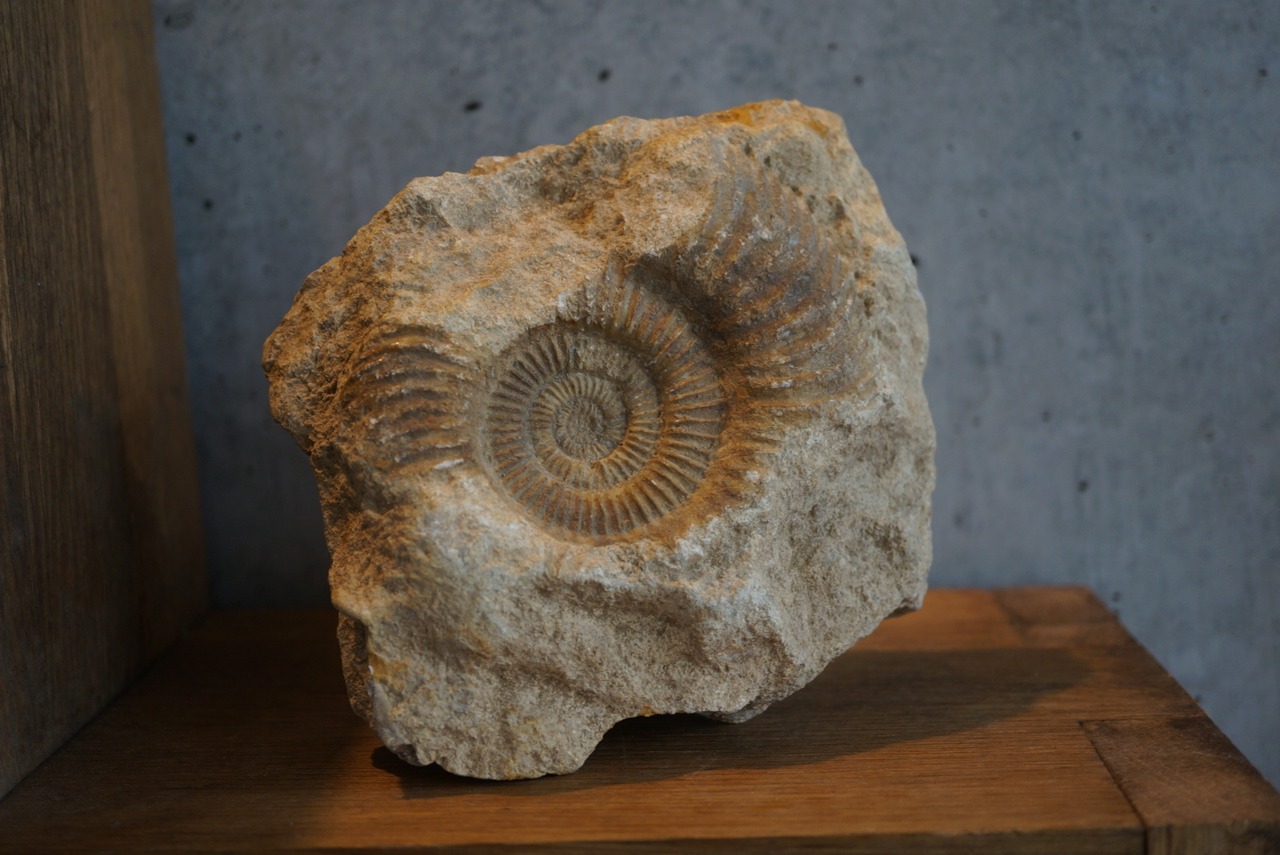 フランス北西部 カルヴァドス エヴルシー産、ジュラ紀中期(約1億7千万年前)のパーキンソニアの大型化石です。