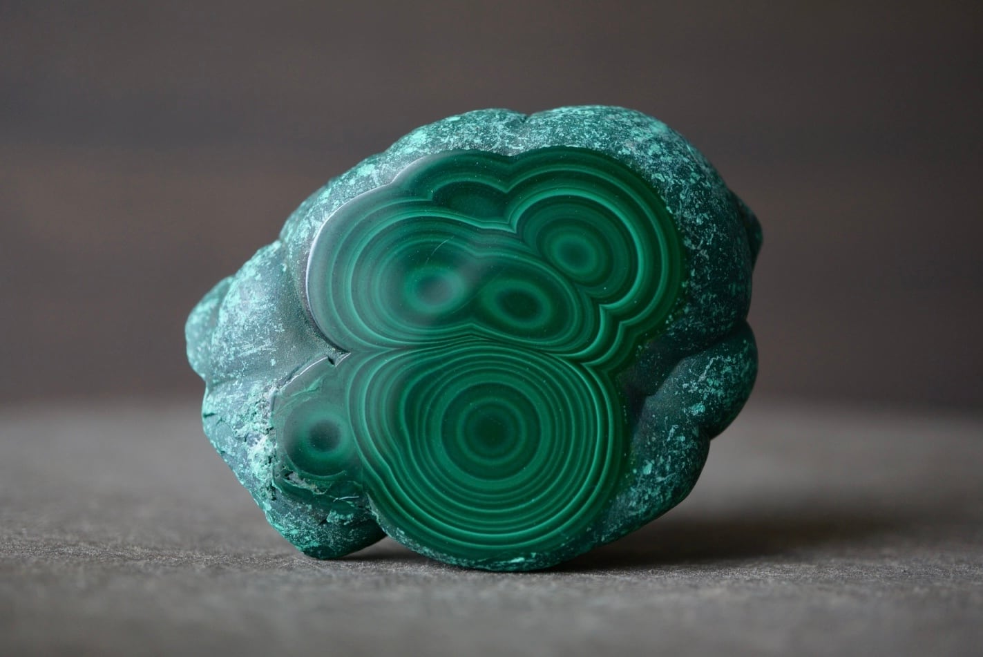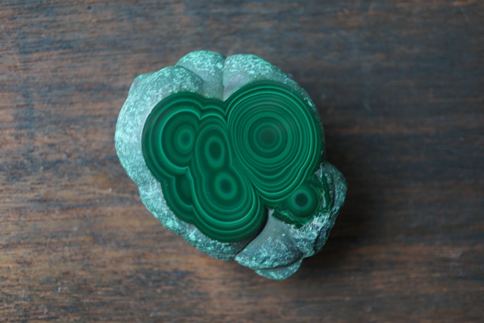 マラカイトは孔雀の羽に似た模様、光沢を表すことから孔雀石とも呼ばれています。