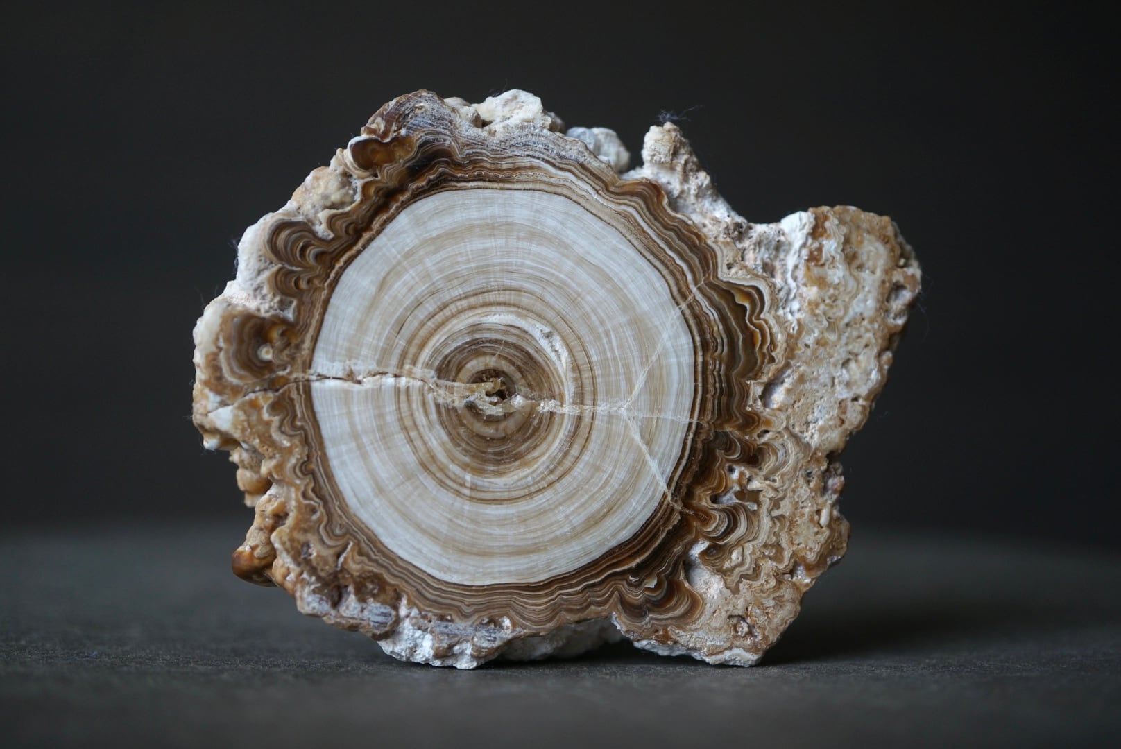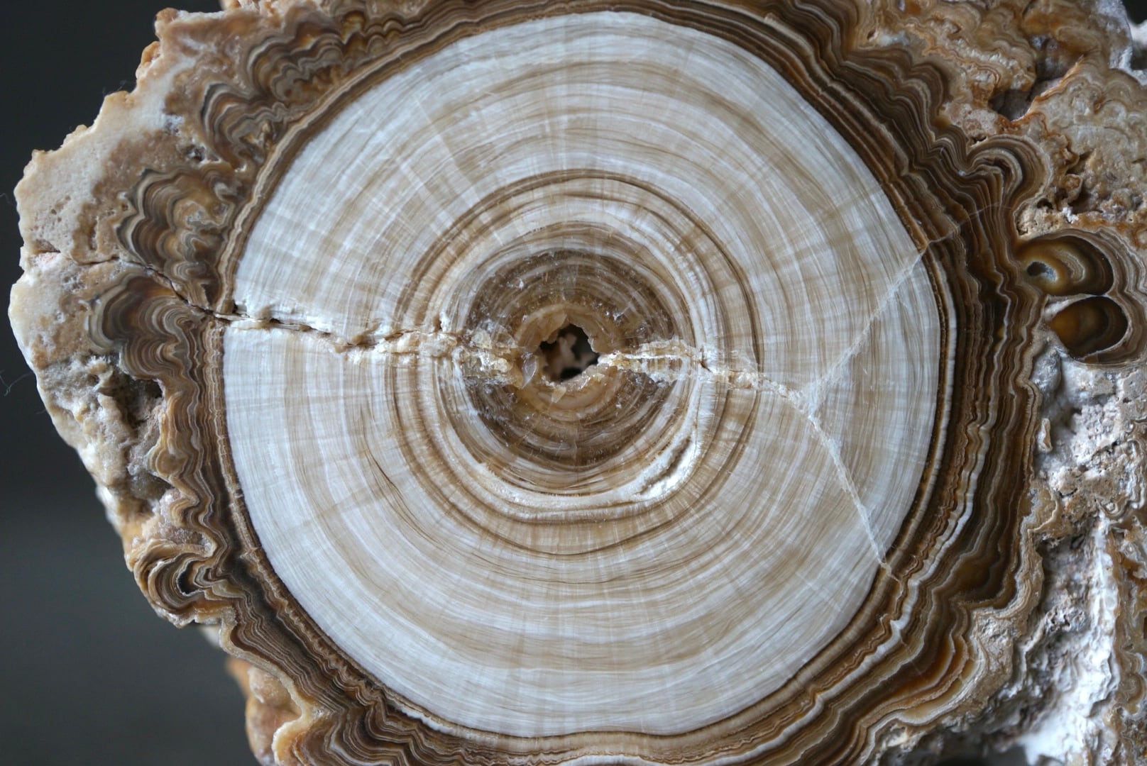 生成過程で方解石、石膏、またはアラゴナイトのの結晶がゆるやかに層を成し、時間とともに沈殿を繰り返すことで、この精緻な円環が形づくられます。