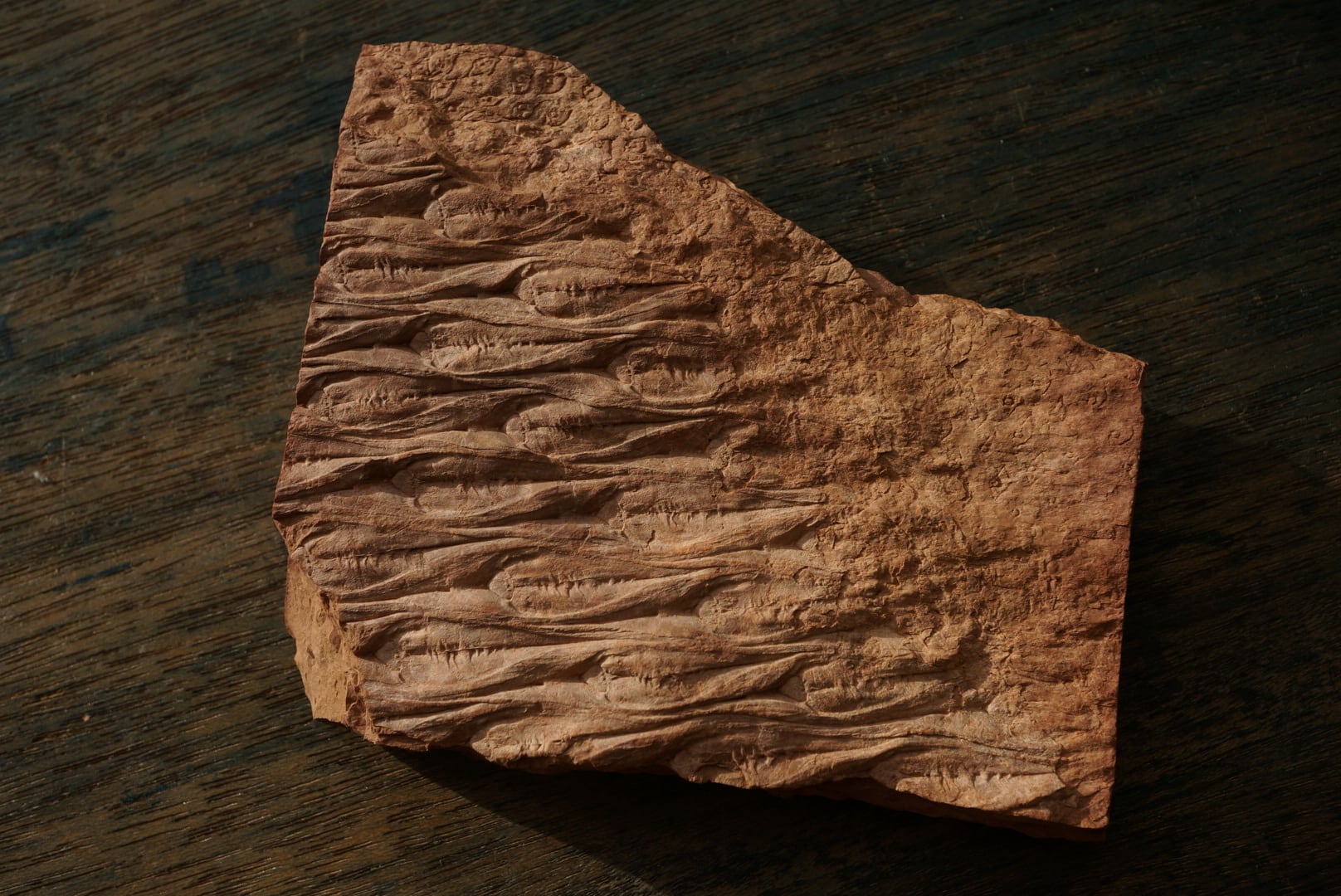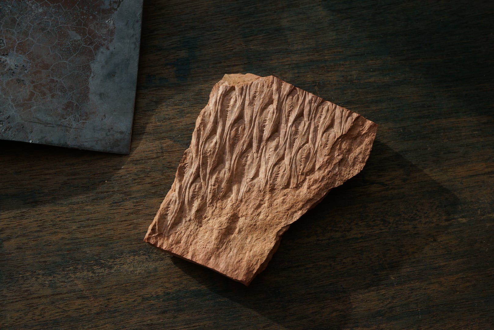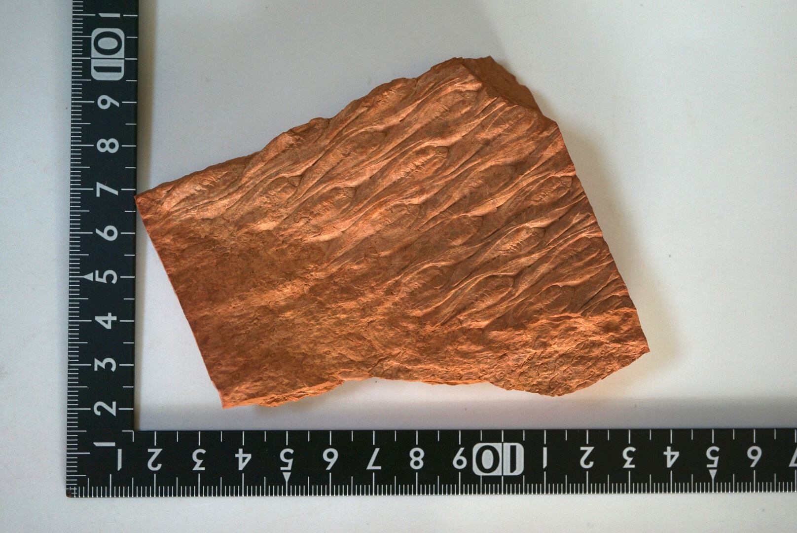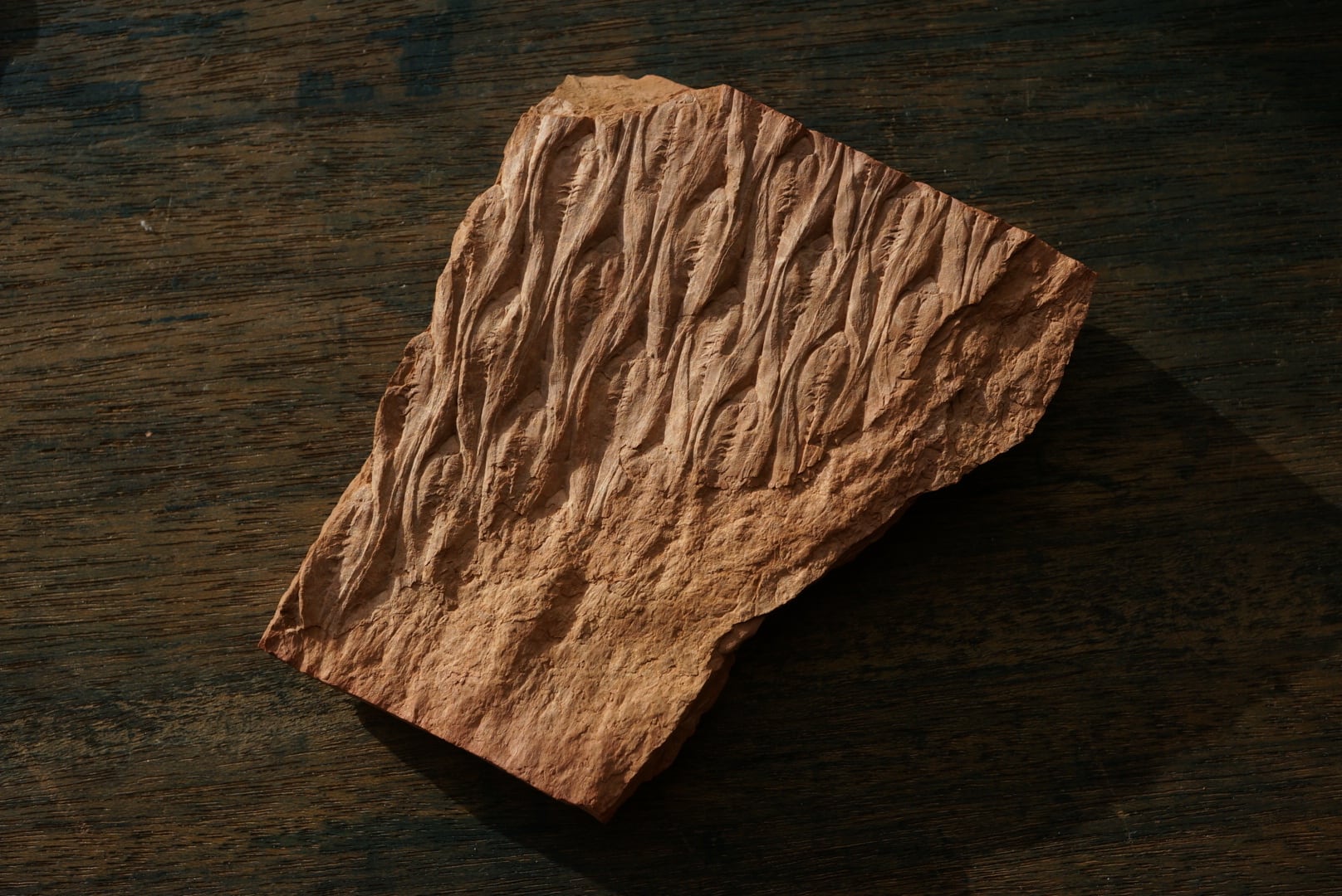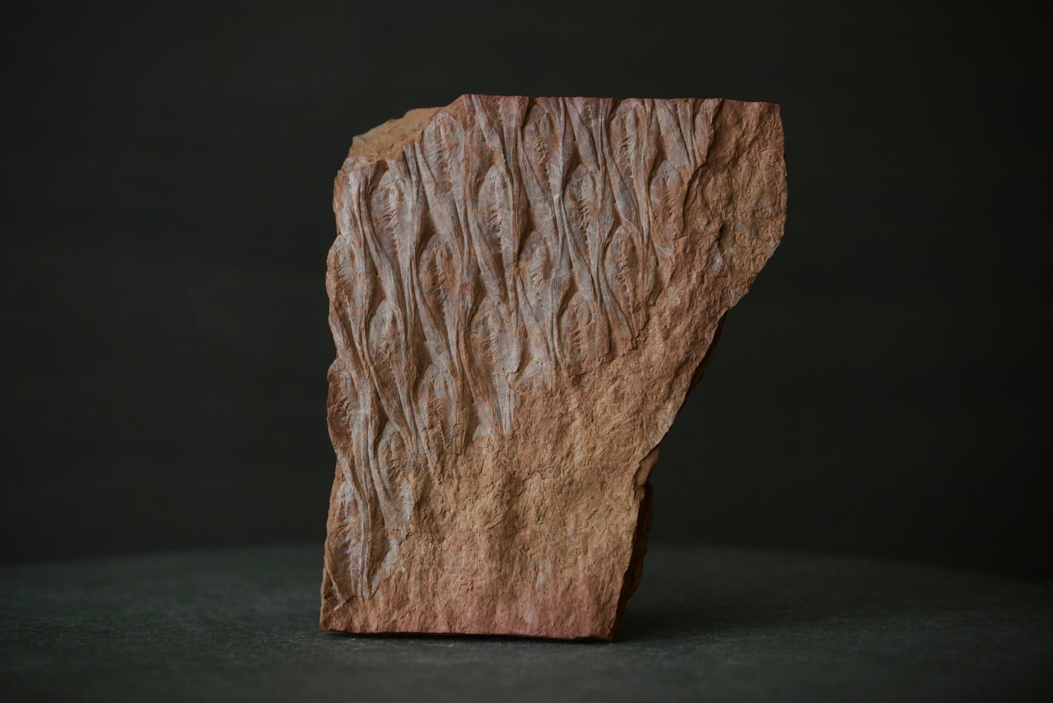 本石はミニマルな樹皮の模様が残された化石で、鱗木の名が示す通り、爬虫類の鱗のように凸凹しています。