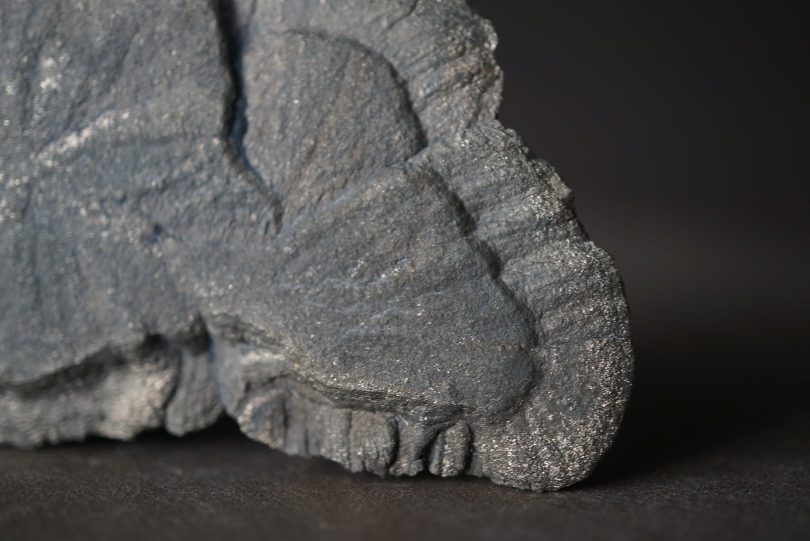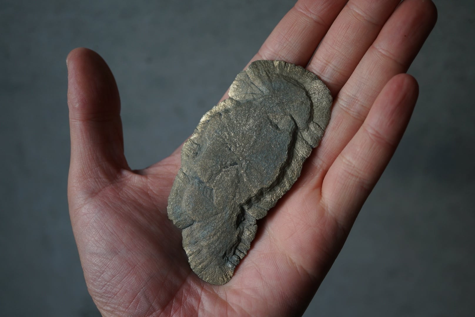 約3億5千万年前の石炭紀に形成されたもので、黄鉄鉱が堆積岩の層内で強い圧力を受け、三次元的に育つのではなく平面的に展開し、独自のかたちを獲得しました。