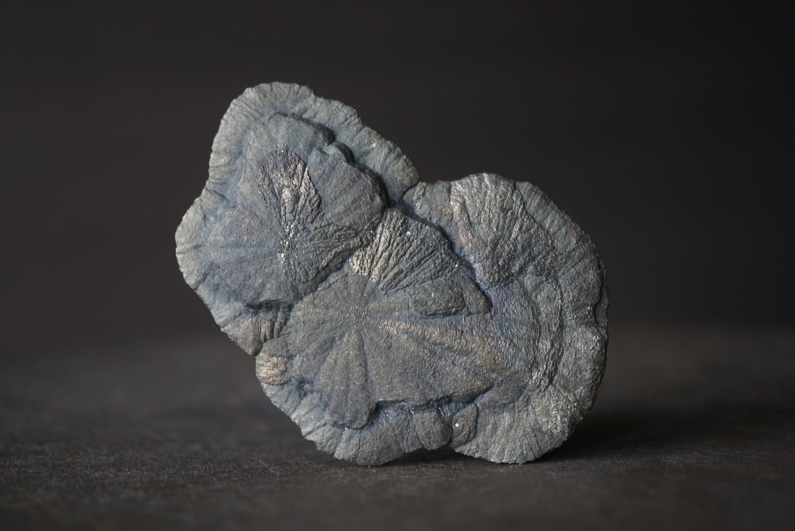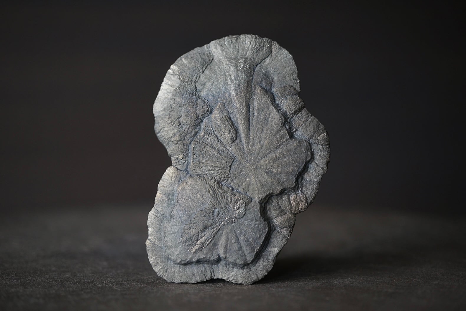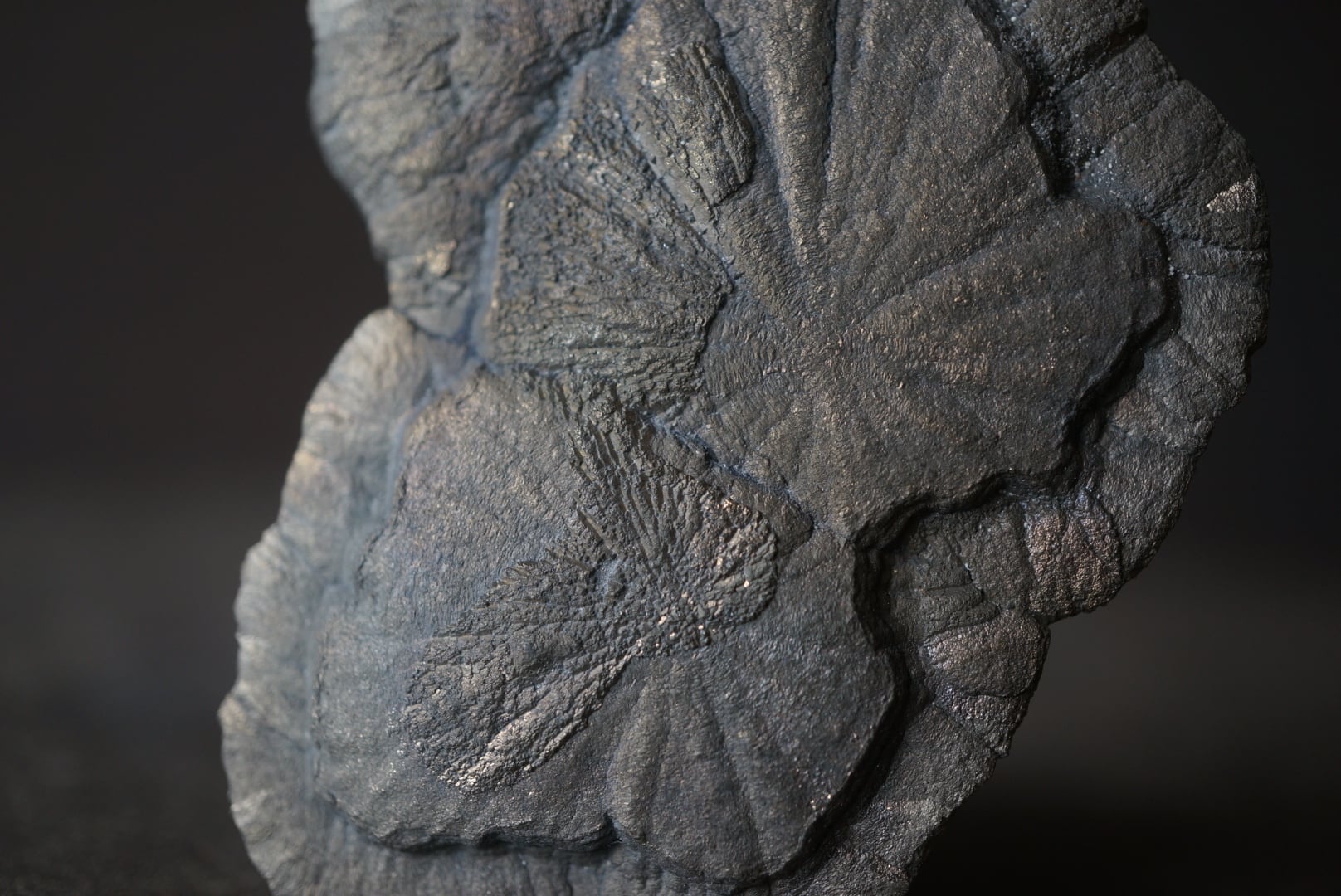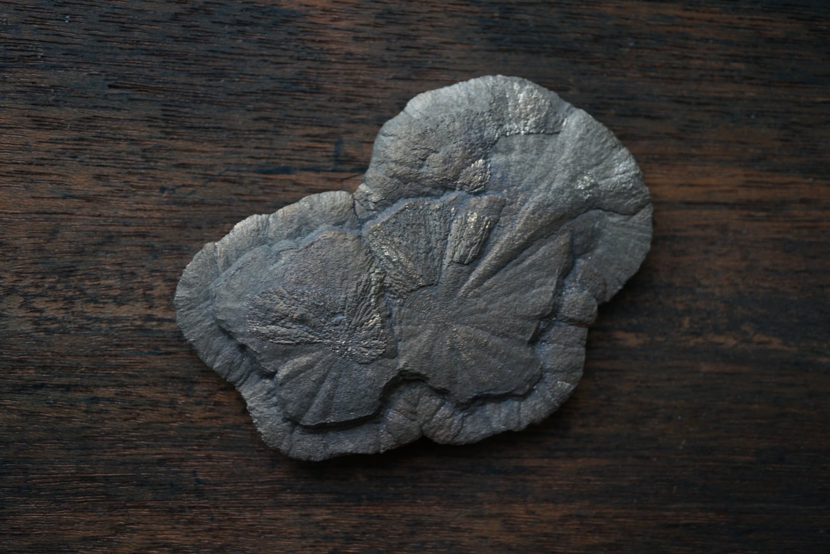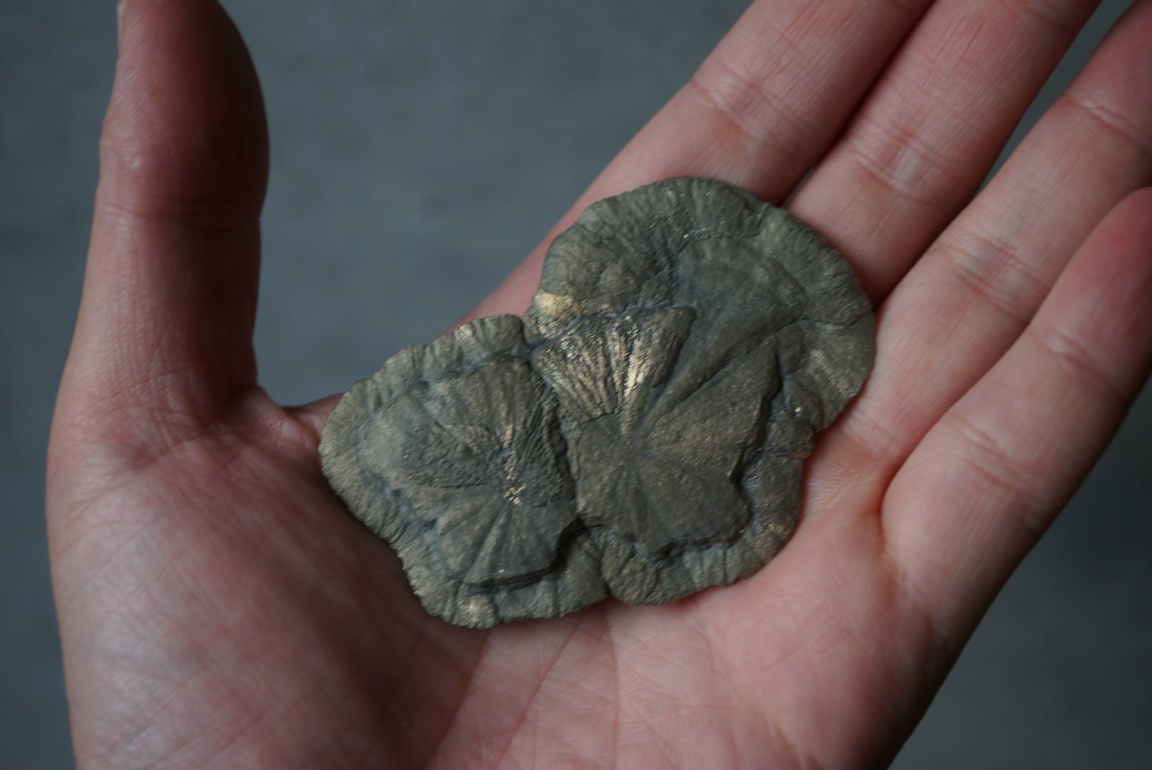 約3億5千万年前の石炭紀に形成されたもので、黄鉄鉱が堆積岩の層内で強い圧力を受け、三次元的に育つのではなく平面的に展開し、独自のかたちを獲得しました。