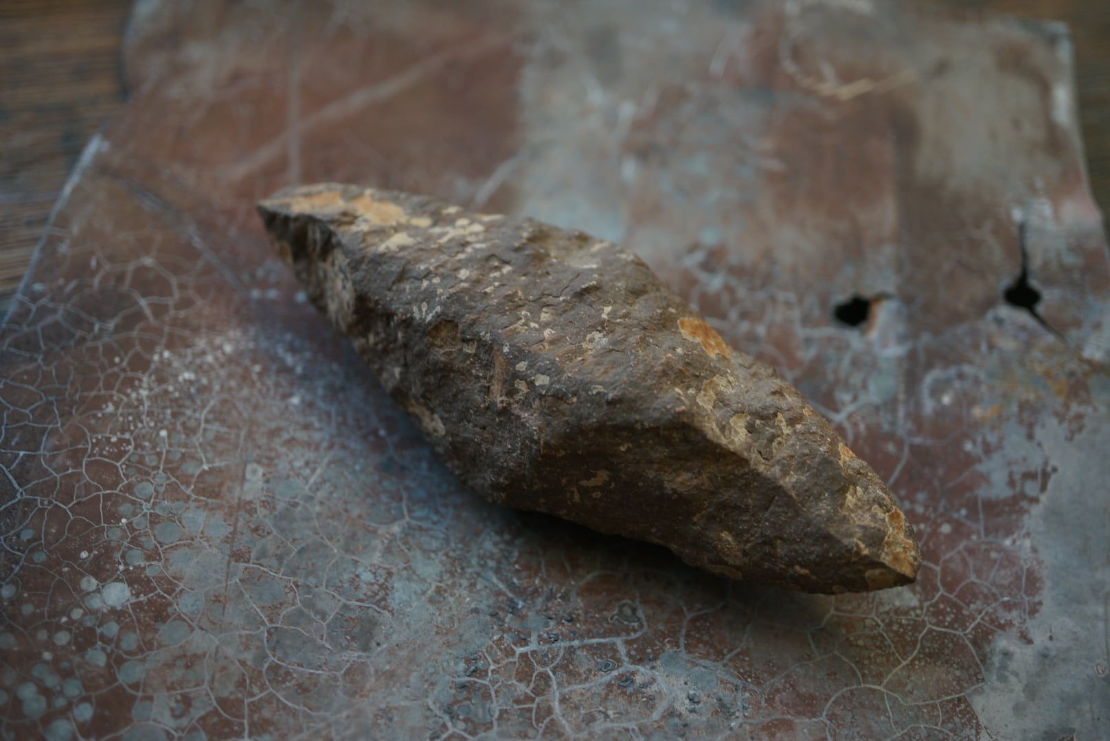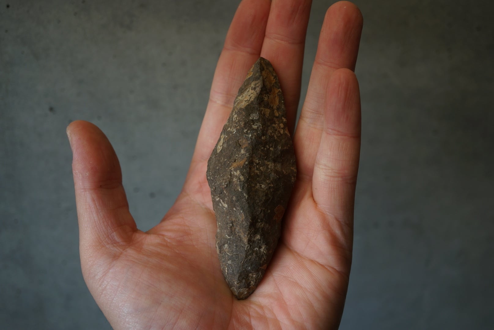 本石は鏃や打製石器のようなかたちが保存された大変希少なもの。