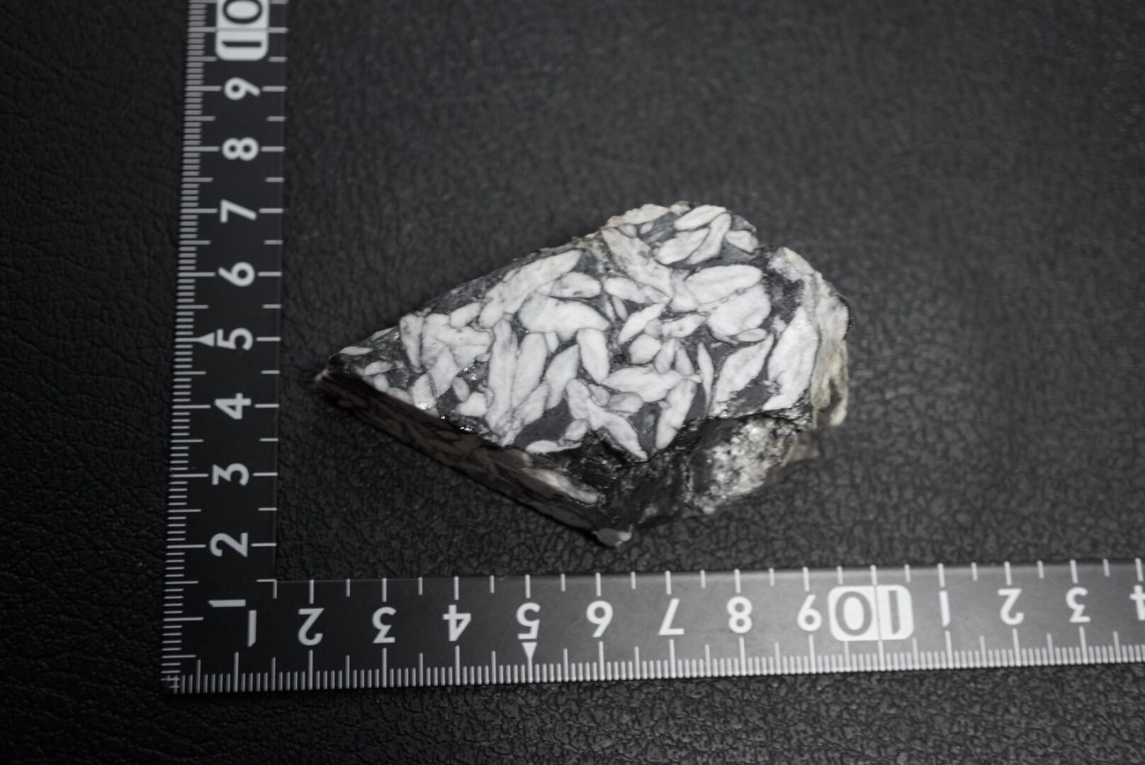 白色のマグネサイトと黒色のドロマイトが独特の美しい模様を描き出します。