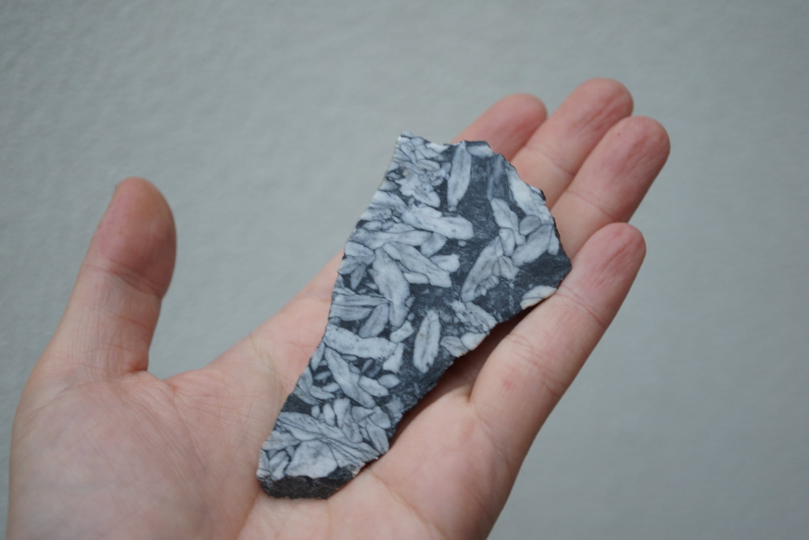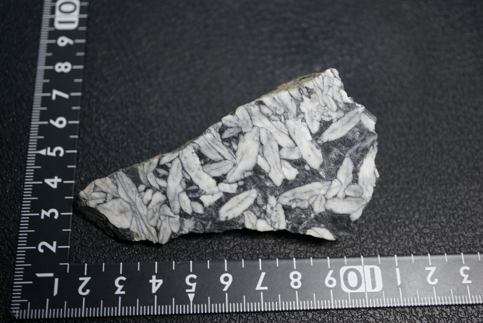 白色のマグネサイトと黒色のドロマイトが独特の美しい模様を描き出します。