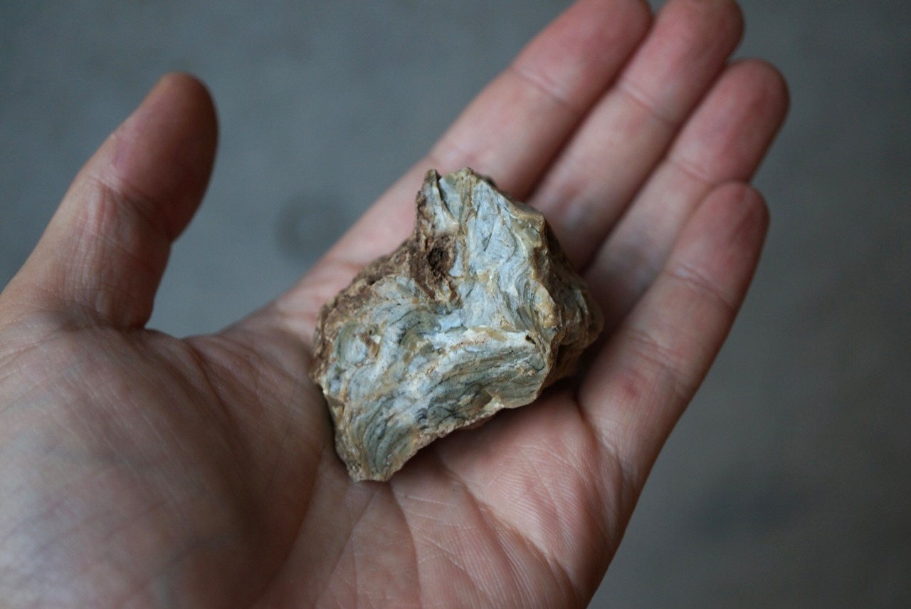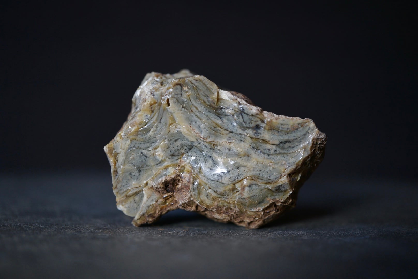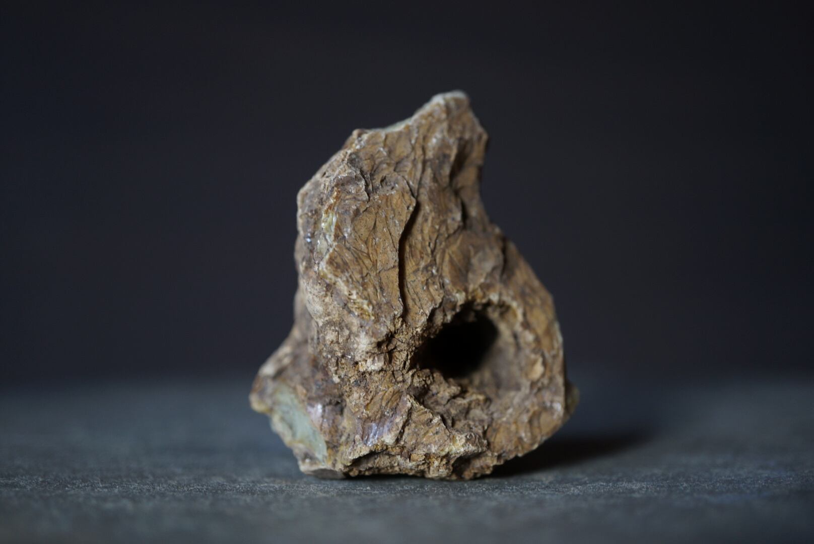 当時の森林環境を示す木質片がそのまま残り、組織の間に樹脂が染み込みながら硬化した構造が見られます。