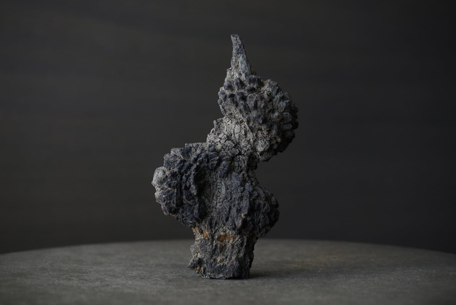 全体に走る細かな亀裂は古い土器片のように時間の積層を感じさせます。