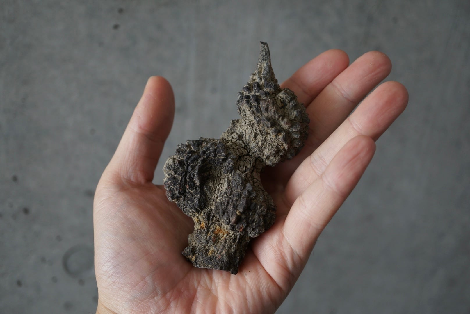 「糞」の化石でありながら、造形的な意思を感じさせる、不思議な存在感の一点です。