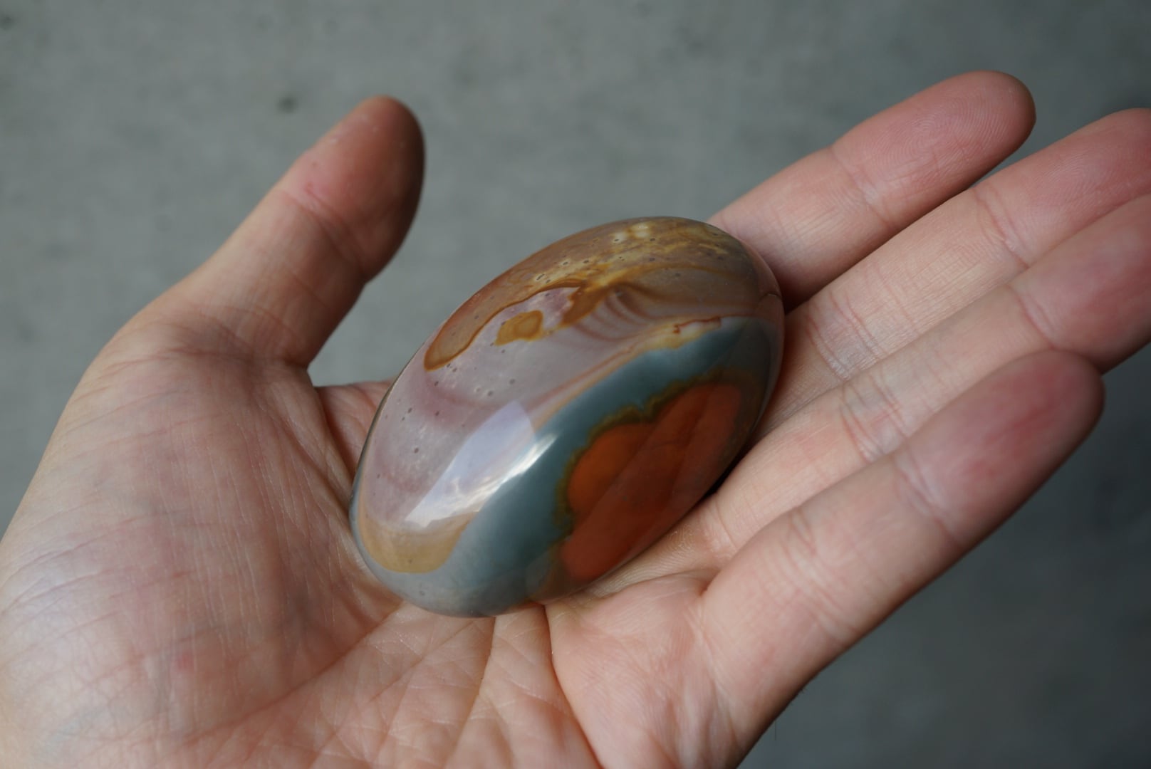 豊かな色彩を表すことからポリクローム(多彩色)と名付けられた、卵型のマダガスカル産ジャスパータンブルです。