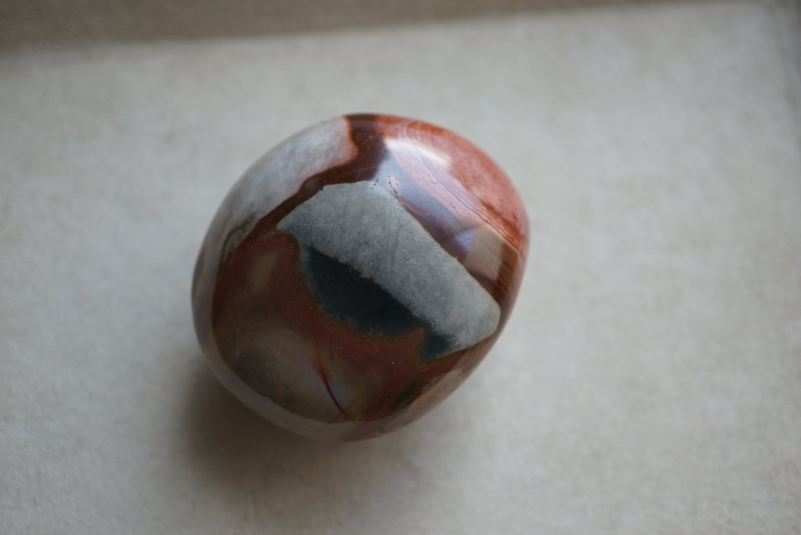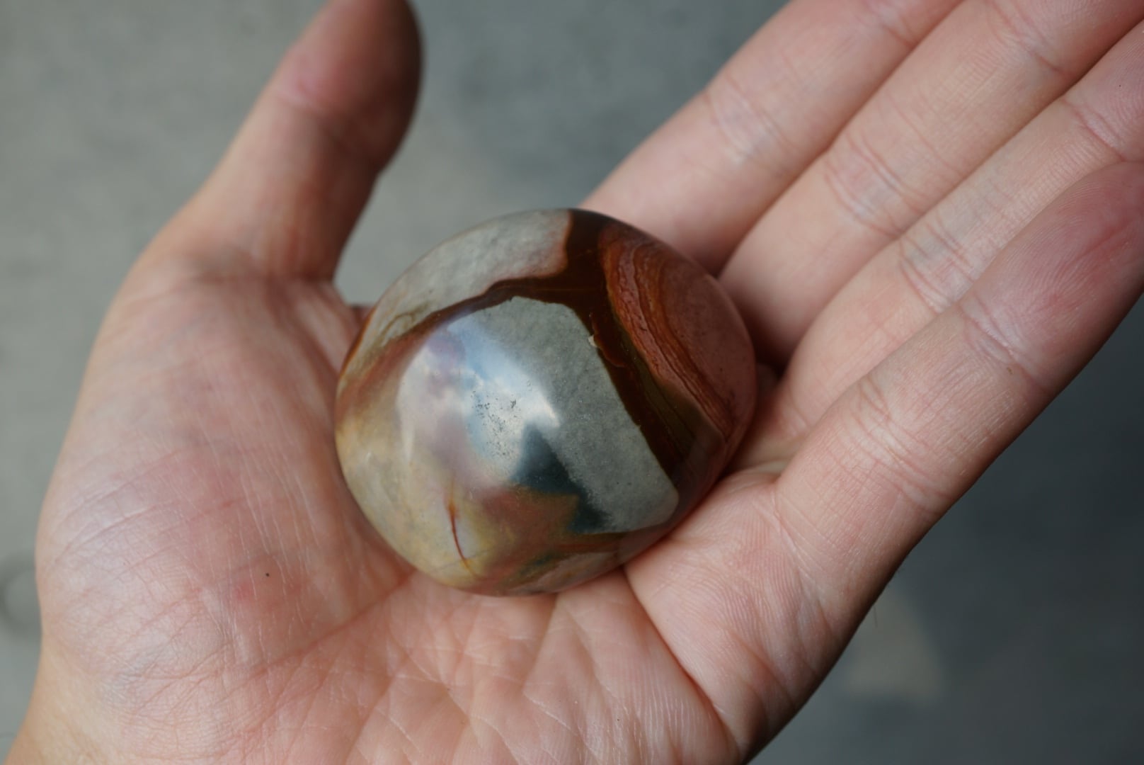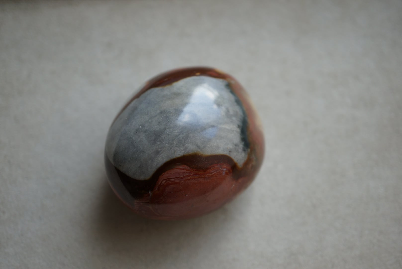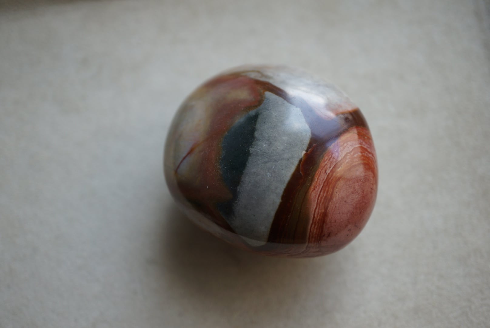 豊かな色彩を表すことからポリクローム(多彩色)と名付けられた、卵型のマダガスカル産ジャスパータンブルです。