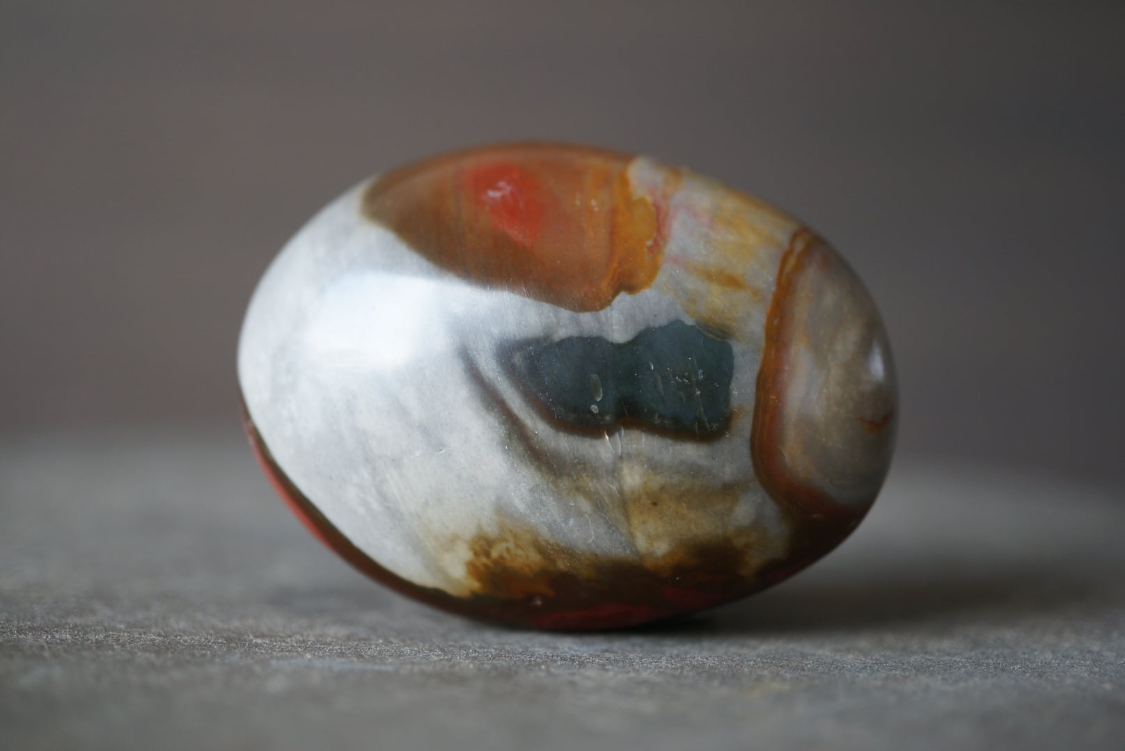 豊かな色彩を表すことからポリクローム(多彩色)と名付けられた、卵型のマダガスカル産ジャスパータンブルです。