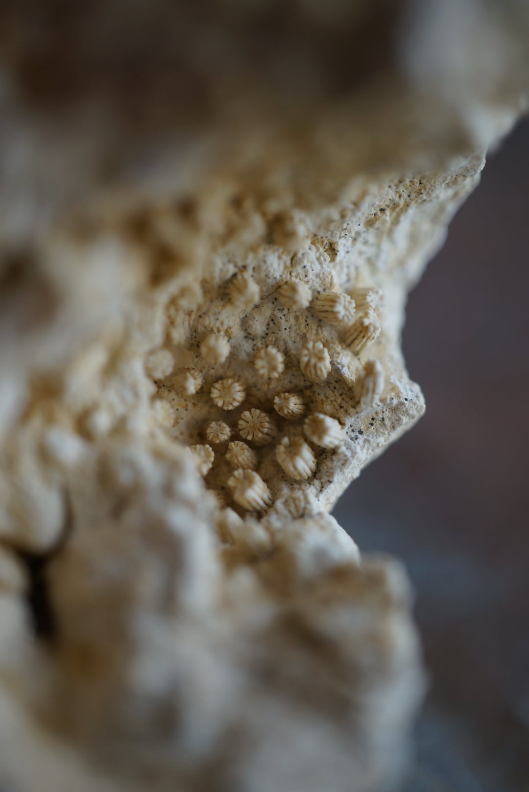 珊瑚ポリプひとつひとつの造形がしっかりと保存された貴重な一石です。